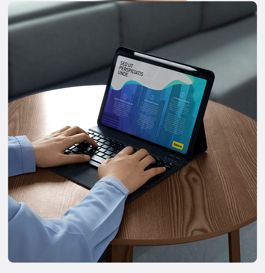 Bạn muốn soạn thảo văn bản, trả lời email hay làm việc hiệu quả hơn trên chiếc máy tính bảng của mình? Bao Da Kèm Bàn Phím Rời Baseus Brilliance sẽ biến thiết bị của bạn thành một cỗ máy làm việc di động thực thụ, với bàn phím có thể tháo rời linh hoạt và trải nghiệm gõ phím tuyệt vời.