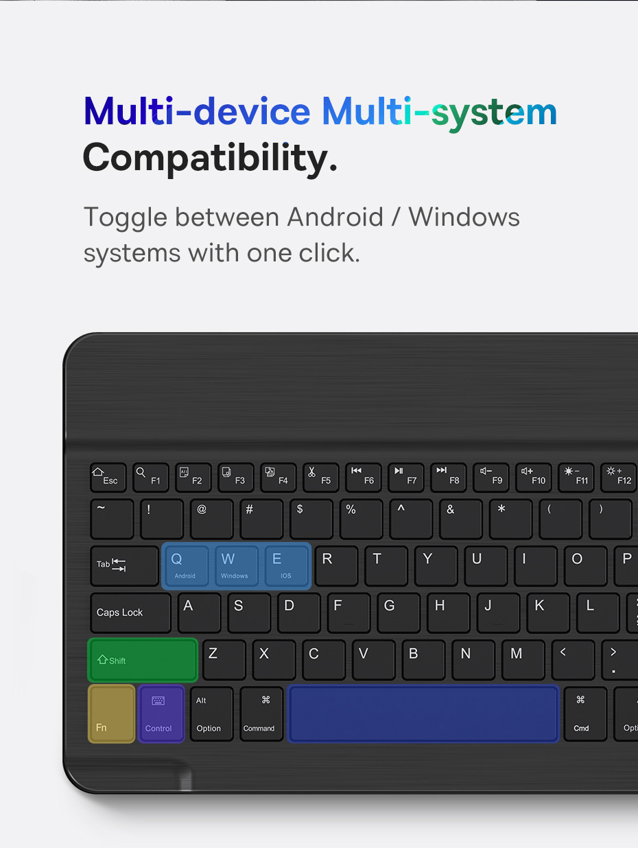 🌐 TƯƠNG THÍCH ĐA HỆ ĐIỀU HÀNH: Không chỉ dành riêng cho một hệ điều hành, bàn phím có thể dễ dàng chuyển đổi và tương thích mượt mà với cả Android, Windows và hệ điều hành của Pad chỉ bằng một tổ hợp phím (Fn + Q/W/E).