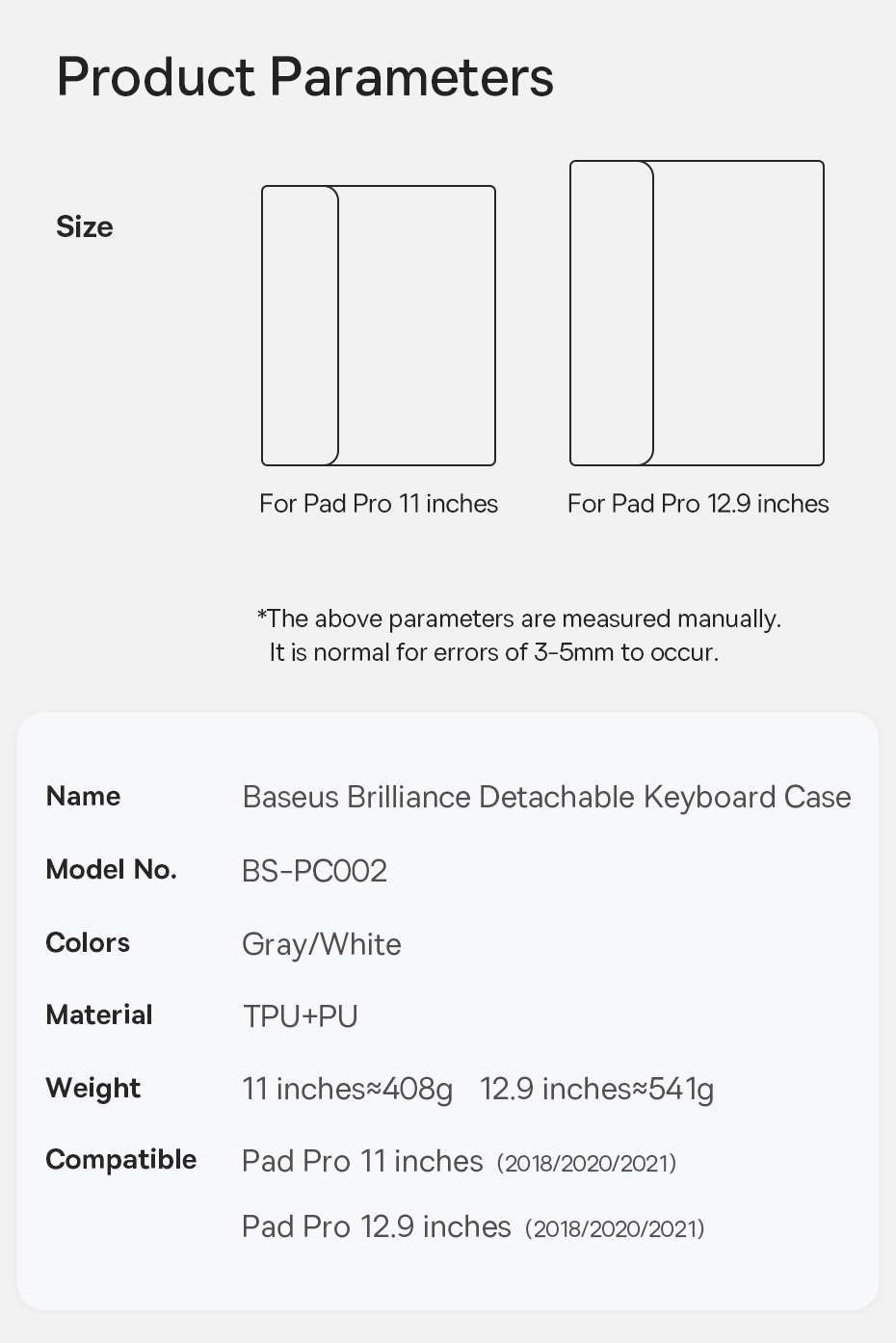 | Tên | Baseus Brilliance Detachable Keyboard Case |