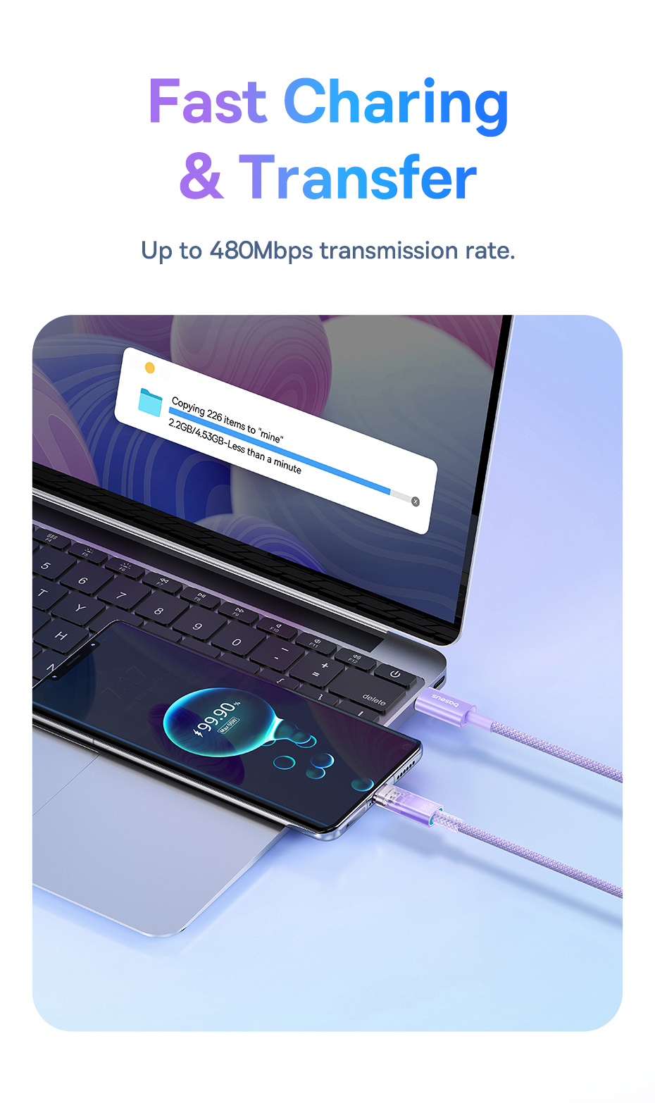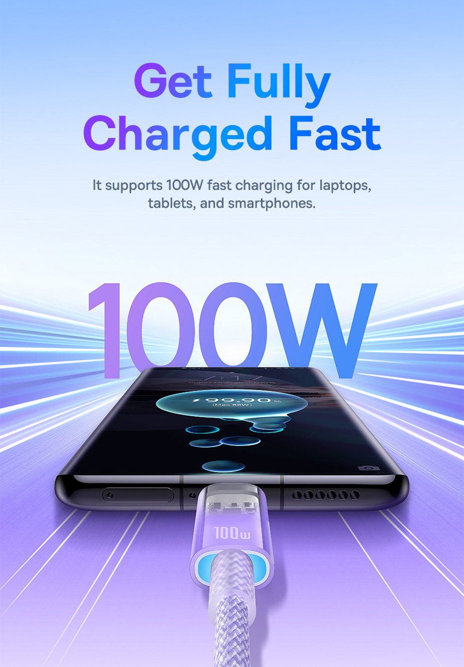 💻📱 Công Suất 100W - Sạc Nhanh Cho Mọi Thiết Bị: Cung cấp đủ năng lượng để sạc nhanh cho Macbook, laptop, máy tính bảng và cả điện thoại. Một sợi cáp duy nhất, mạnh mẽ và an toàn cho cả hệ sinh thái Type-C của bạn, từ thiết bị lớn đến nhỏ.