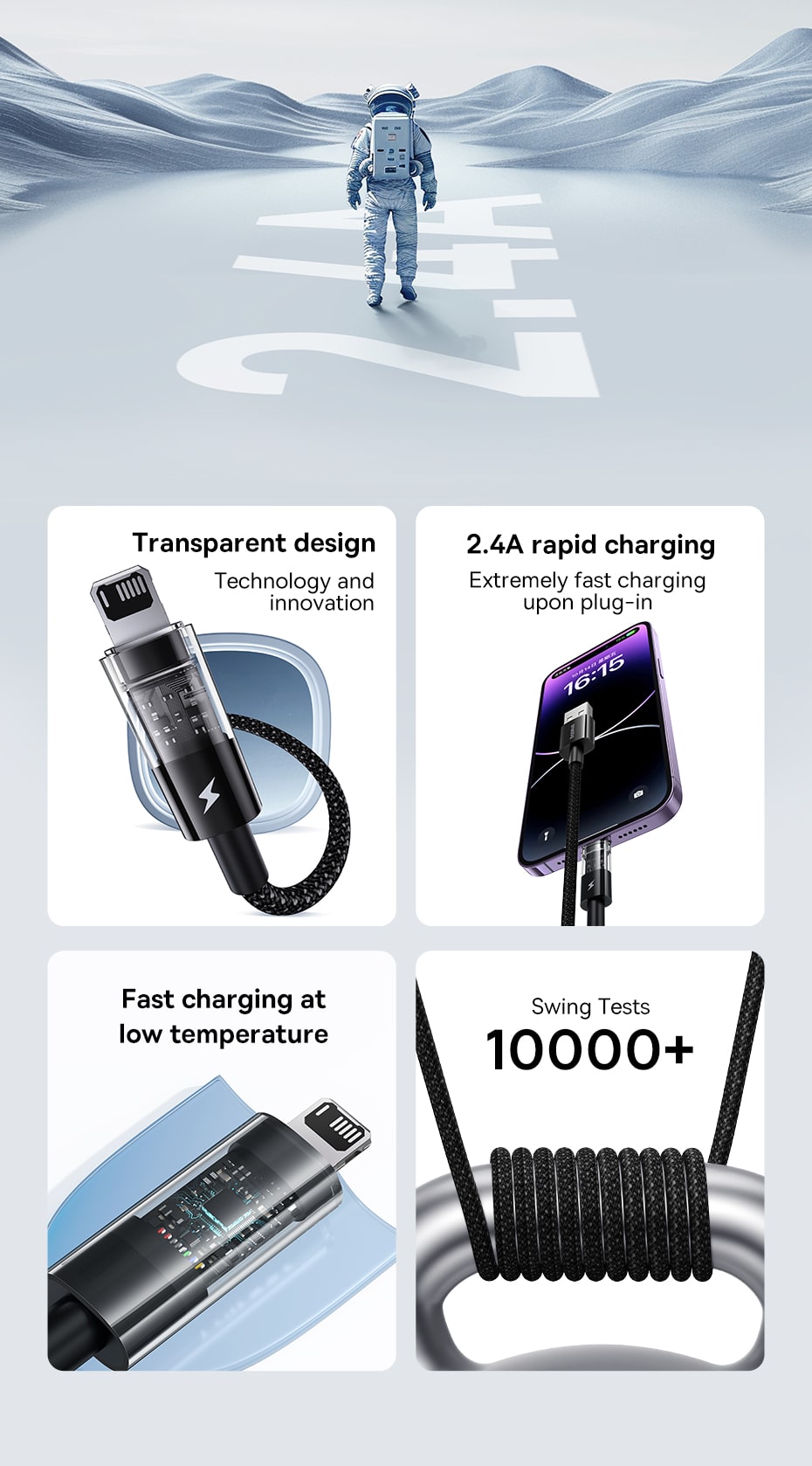 ⚡ SẠC NHANH 2.4A ỔN ĐỊNH: Cung cấp dòng điện sạc nhanh lên đến 2.4A, giúp nạp đầy năng lượng cho điện thoại và các thiết bị tương thích một cách nhanh chóng và ổn định. Cáp cũng hỗ trợ truyền tải dữ liệu hiệu quả.