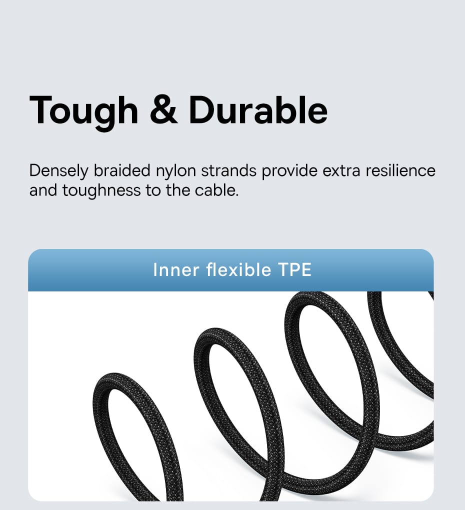 💪 SIÊU BỀN BỈ, CHỐNG ĐỨT GÃY: Được chế tạo để trường tồn. Dây cáp được bện từ 48 sợi nylon mật độ cao, cực kỳ dẻo dai và chắc chắn. Thiết kế đầu cắm liền khối đã vượt qua bài kiểm tra uốn cong hơn 10,000 lần, hạn chế tối đa tình trạng gãy đứt thường gặp.