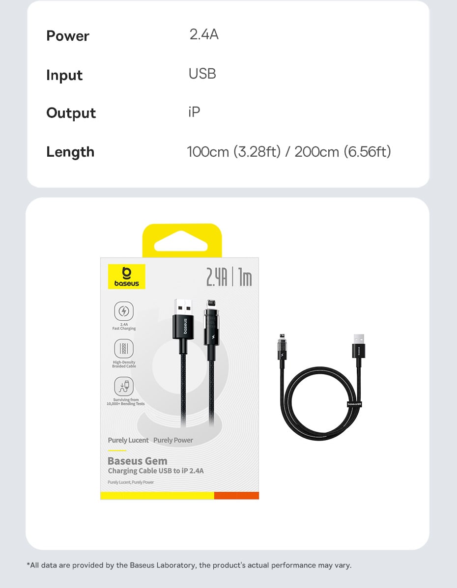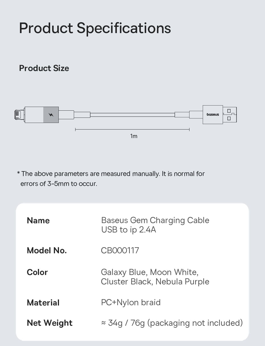 | Tên | Cáp Sạc Nhanh Baseus Gem Charging Cable USB to iP 2.4A |