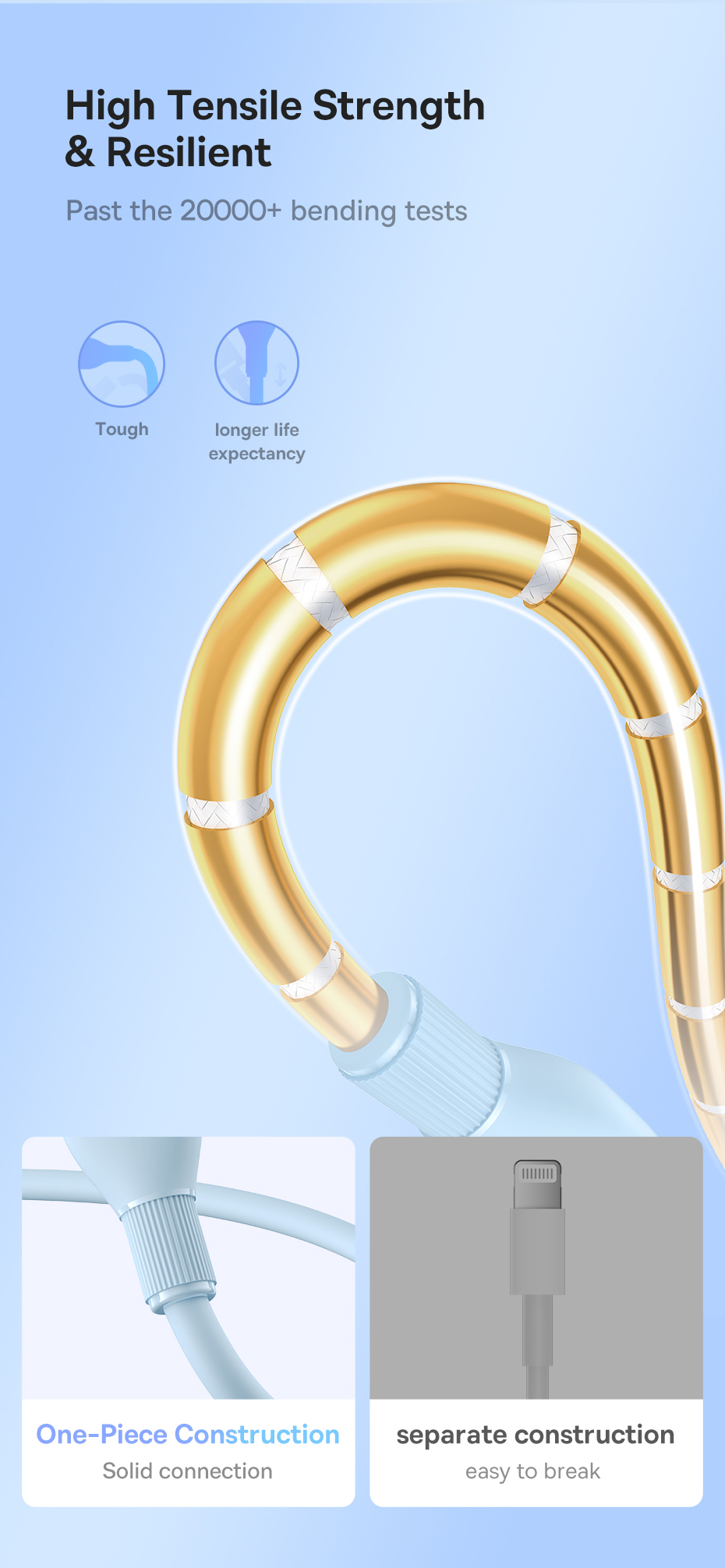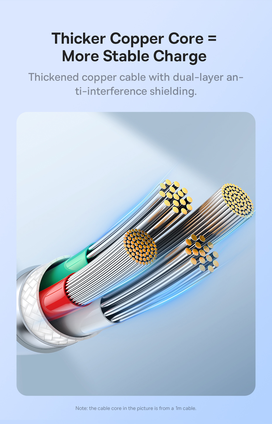 💪 Dẻo Dai Vượt Trội, Chống Gãy Gập: Dù mềm mại, sợi cáp vẫn được gia cố chắc chắn ở các khớp nối và có lõi đồng dày, đảm bảo độ bền cao, chịu được các tác động uốn cong, gập xoắn trong quá trình sử dụng hàng ngày.