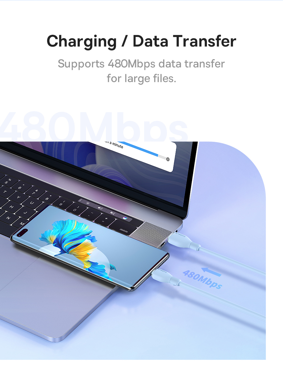 🔗 Truyền Dữ Liệu Nhanh Chóng: Ngoài khả năng sạc ấn tượng, cáp còn hỗ trợ truyền tải dữ liệu giữa điện thoại và máy tính với tốc độ 480Mbps, giúp bạn sao chép hình ảnh và tài liệu một cách dễ dàng.