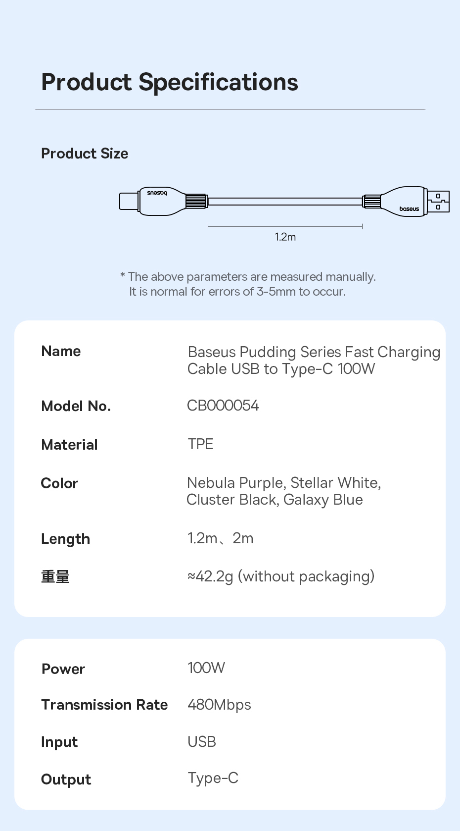 | Tên | Cáp Sạc Nhanh Baseus Pudding Series Fast Charging Cable USB to Type-C 100W |