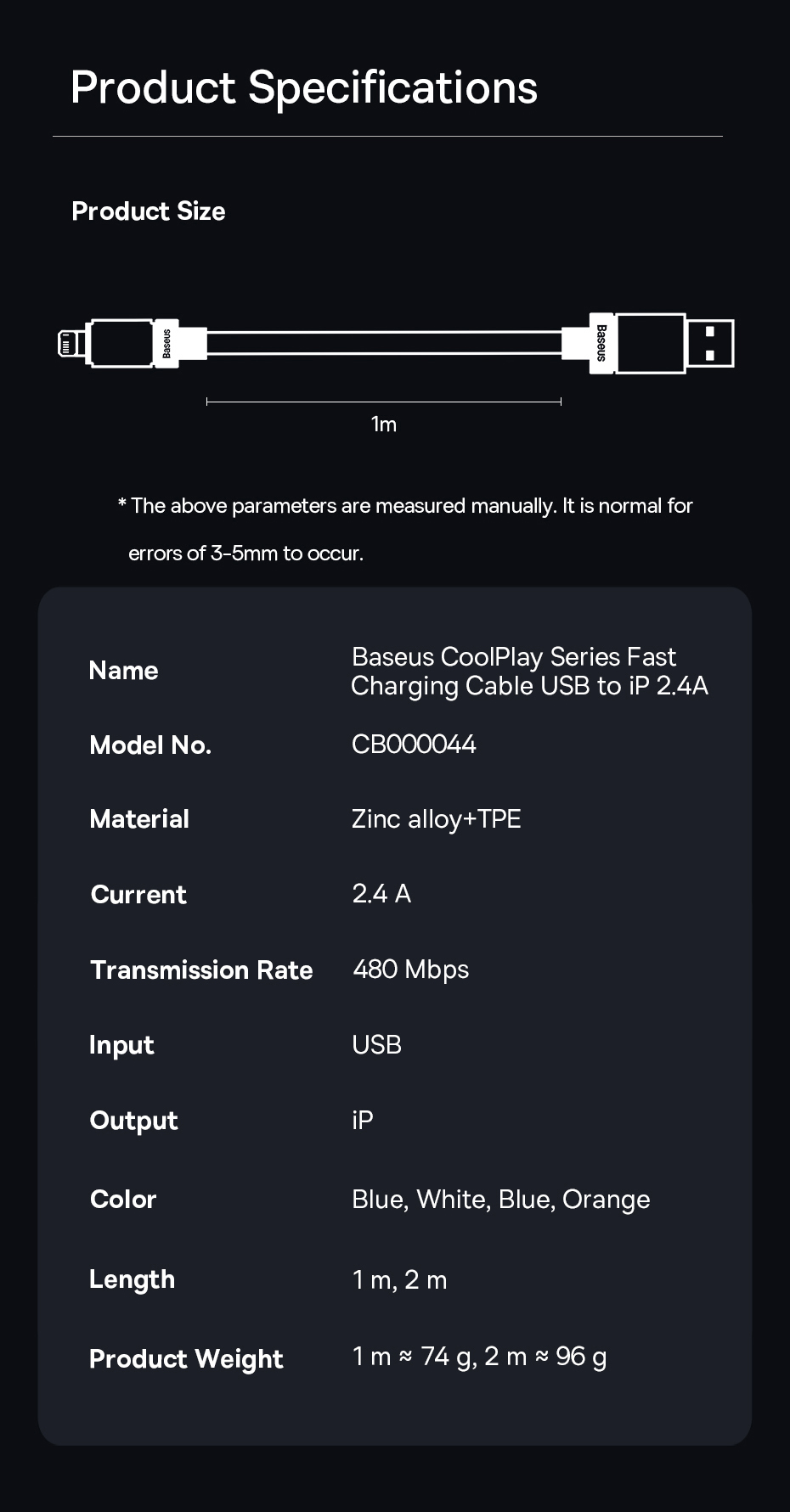 | Tên | Cáp Sạc Nhanh Cho iP Baseus CoolPlay Series Fast Charging Cable USB to iP 2.4A |