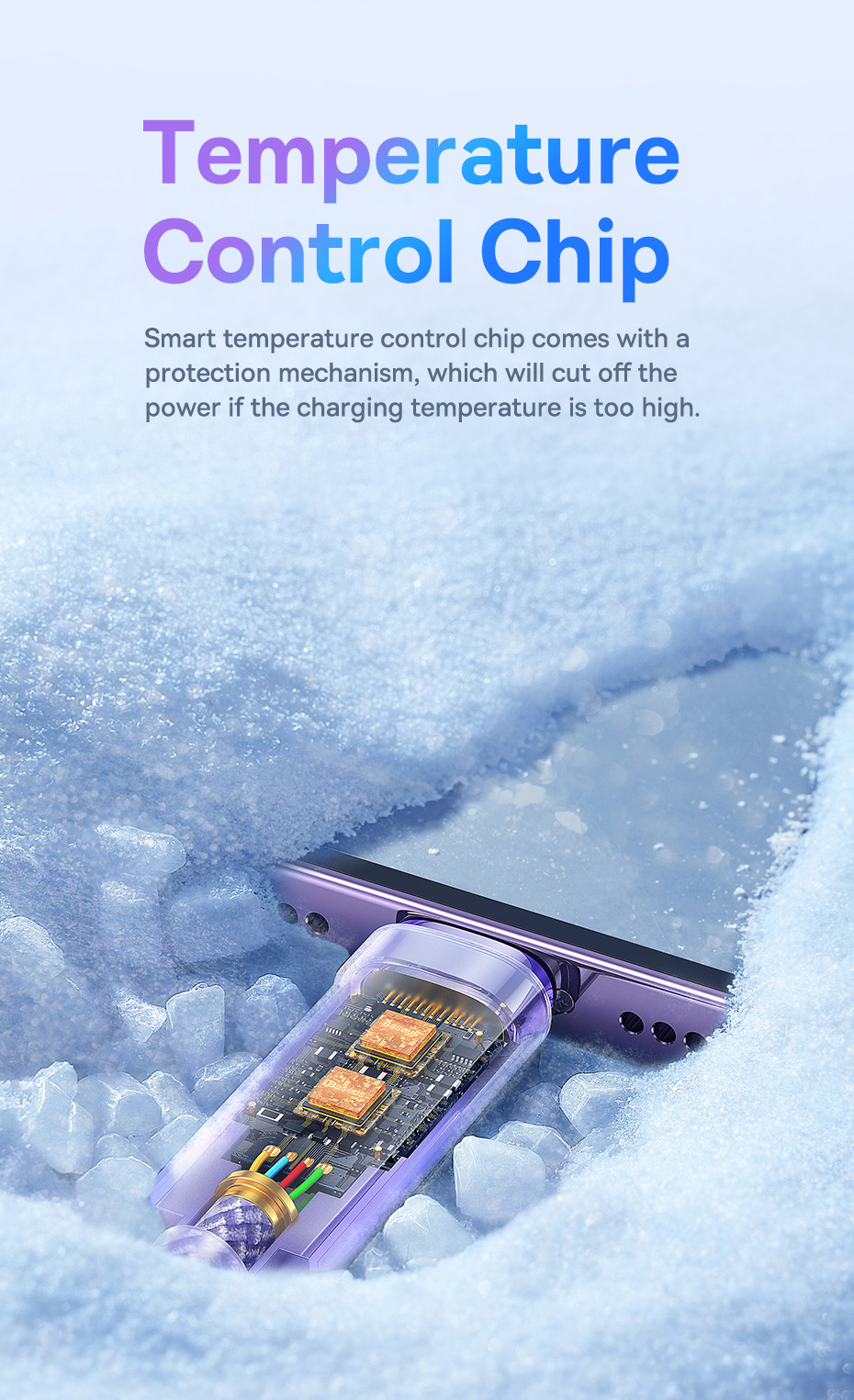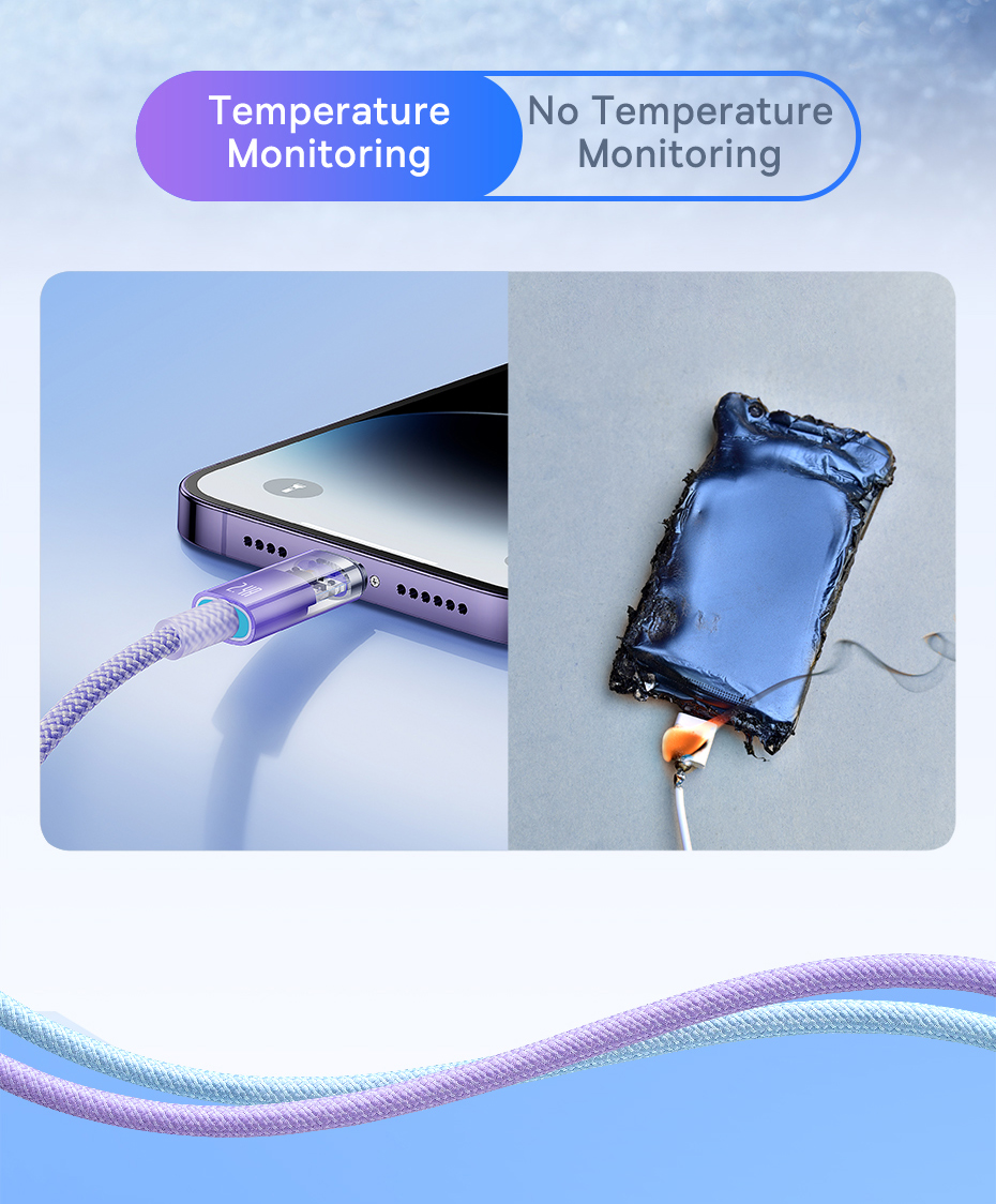 🌡️ Kiểm Soát Nhiệt Độ Thông Minh, Chống Nóng Máy: Đây là tính năng đột phá nhất! Chip xử lý thông minh tích hợp trong đầu cắm liên tục theo dõi nhiệt độ. Khi phát hiện nhiệt độ tăng cao bất thường, cáp sẽ tự động điều chỉnh công suất sạc để làm mát, bảo vệ an toàn tối đa cho pin và linh kiện bên trong điện thoại của bạn.