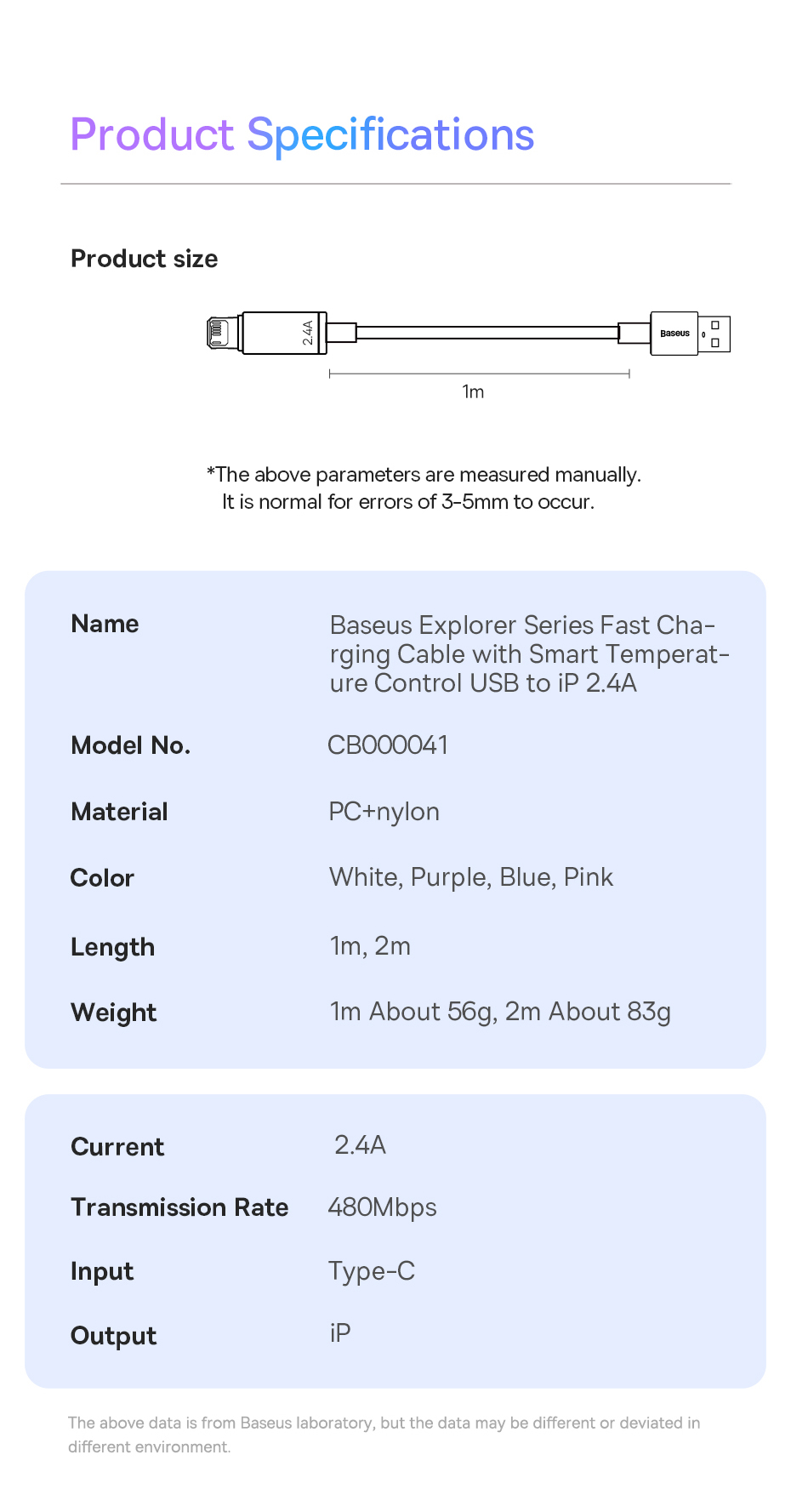 | Tên | Cáp Sạc Nhanh Cho iPhone Baseus Explorer Series Fast Charging Cable with Smart Temperature Control |