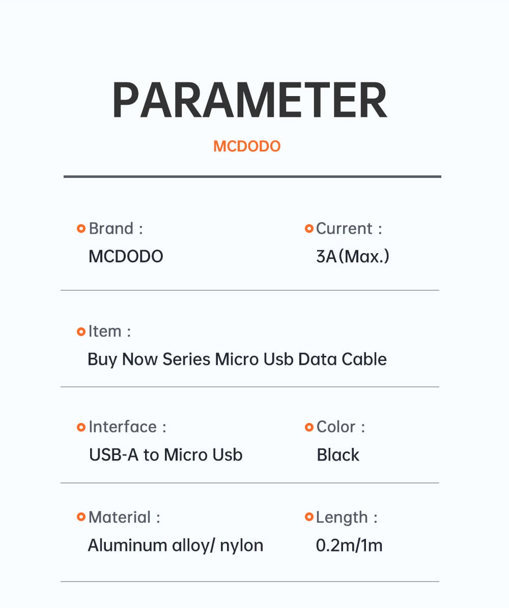 | Tên | Cáp Sạc Nhanh Mcdodo Buy Now Series Data Cable USB to Micro 3A |