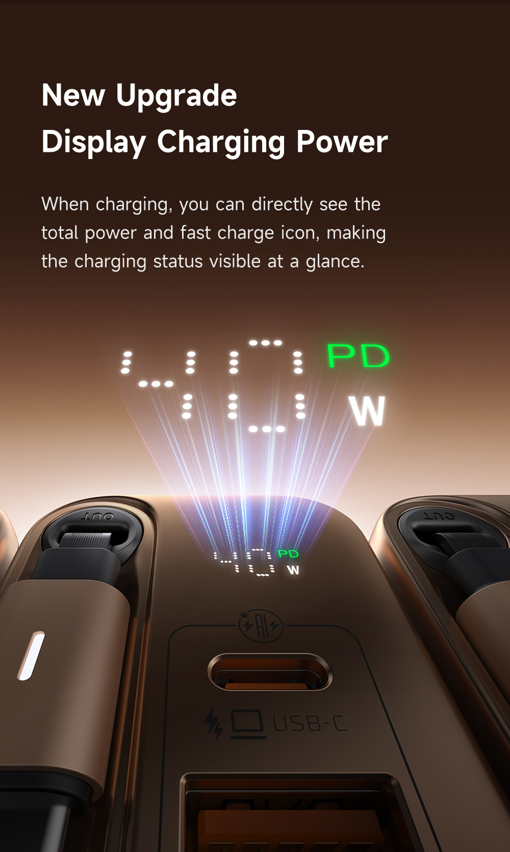 📊 Màn Hình LED Hiển Thị Thông Minh: Dễ dàng theo dõi công suất sạc (W) theo thời gian thực qua màn hình kỹ thuật số trực quan, giúp bạn biết chắc chắn thiết bị của mình có đang được sạc nhanh hay không.