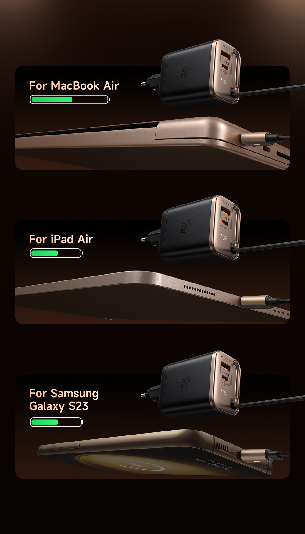 🔬 Công Nghệ GaN - Nhỏ Gọn & Mát Mẻ: Công nghệ Gallium Nitride giúp củ sạc đa cổng mạnh mẽ này có kích thước nhỏ gọn đến bất ngờ, đồng thời hoạt động mát mẻ và hiệu quả hơn so với các củ sạc truyền thống.