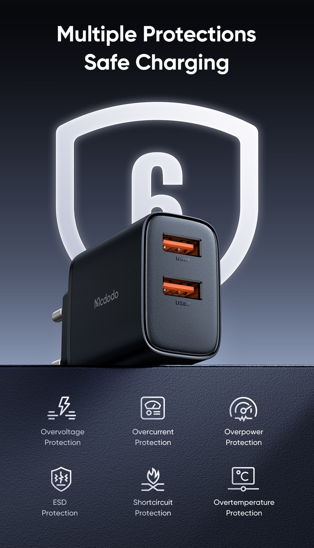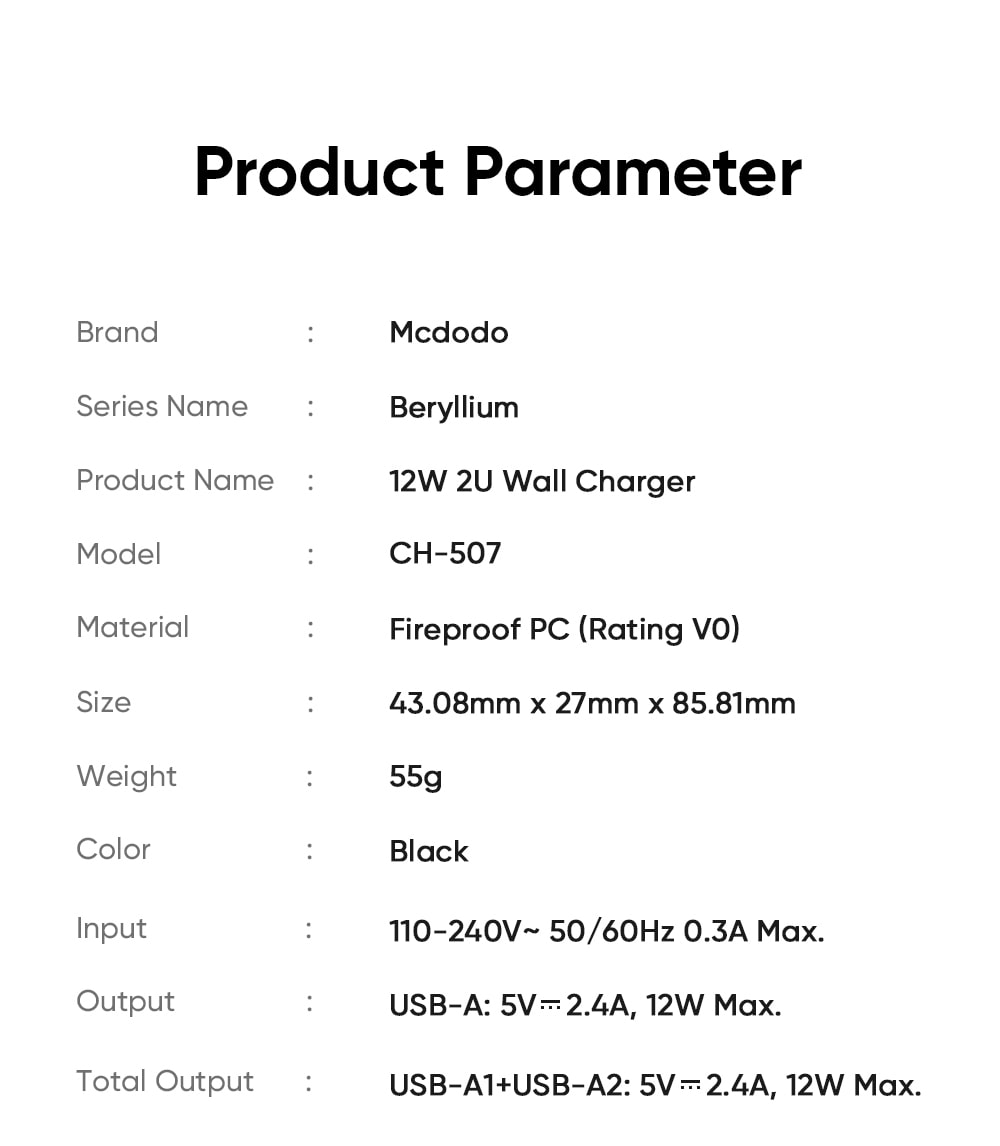 | Tên | Cốc Sạc Nhanh Mcdodo 12W Dual USB Charger (Chân cắm tròn) |