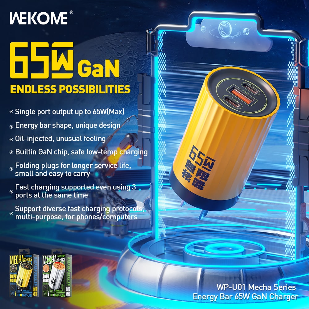 Cốc Sạc Nhanh Wekome WP-U01 Mecha Series Energy Bar GaN Charger 65W là một giải pháp sạc hiệu quả và tiện lợi cho người dùng đòi hỏi tốc độ sạc nhanh và linh hoạt khi sử dụng nhiều thiết bị di động.