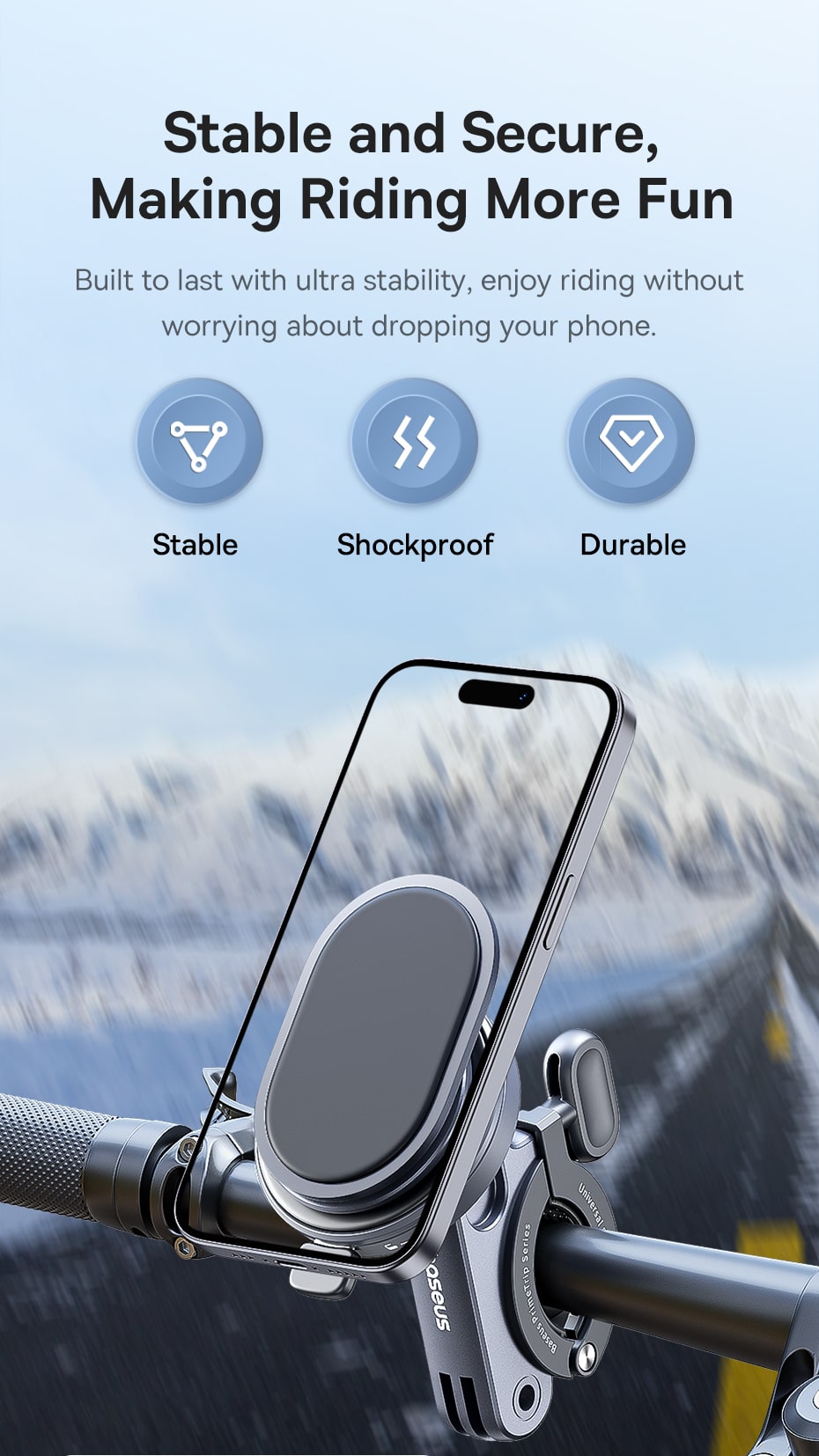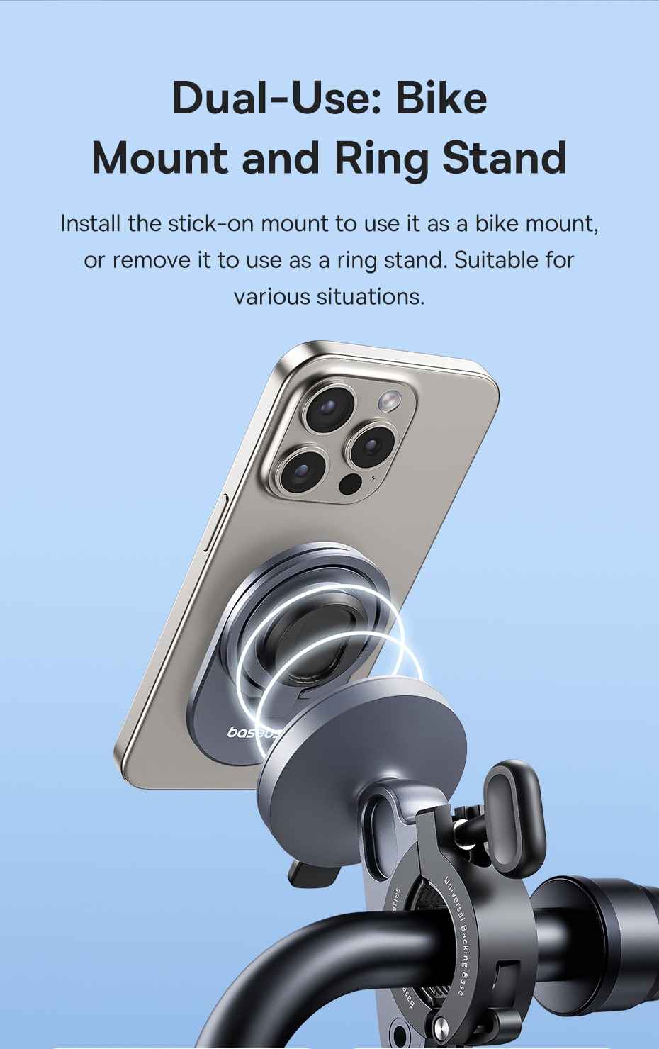 Trải nghiệm sự tiện lợi tối đa với giá đỡ điện thoại Baseus PrimeTrip. Đây không chỉ là một chiếc giá đỡ xe đạp vững chãi, mà còn có thể tách rời để trở thành một chiếc giá đỡ dạng nhẫn (ring stand) thời trang, đáp ứng mọi nhu-cầu sử dụng của bạn từ trên đường cho đến tại nhà.