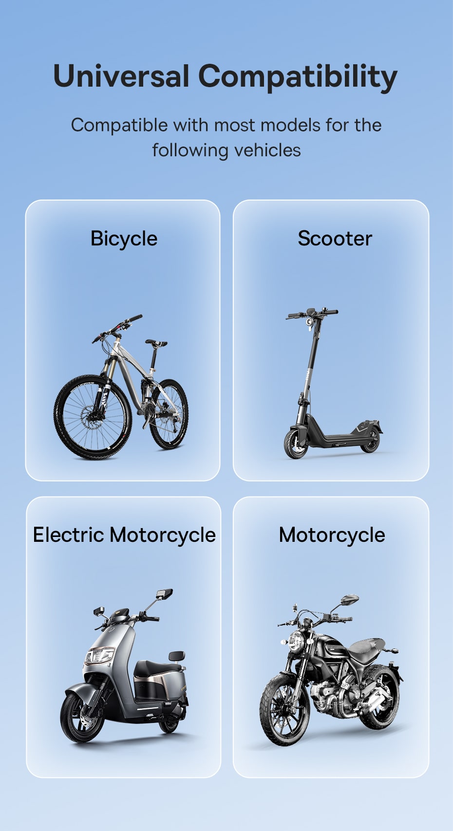 🔄 Tương Thích Rộng Rãi: Ngàm kẹp đa năng, dễ dàng lắp đặt trên hầu hết các loại ghi đông xe đạp, xe scooter, xe máy điện... mang lại sự linh hoạt tối đa.