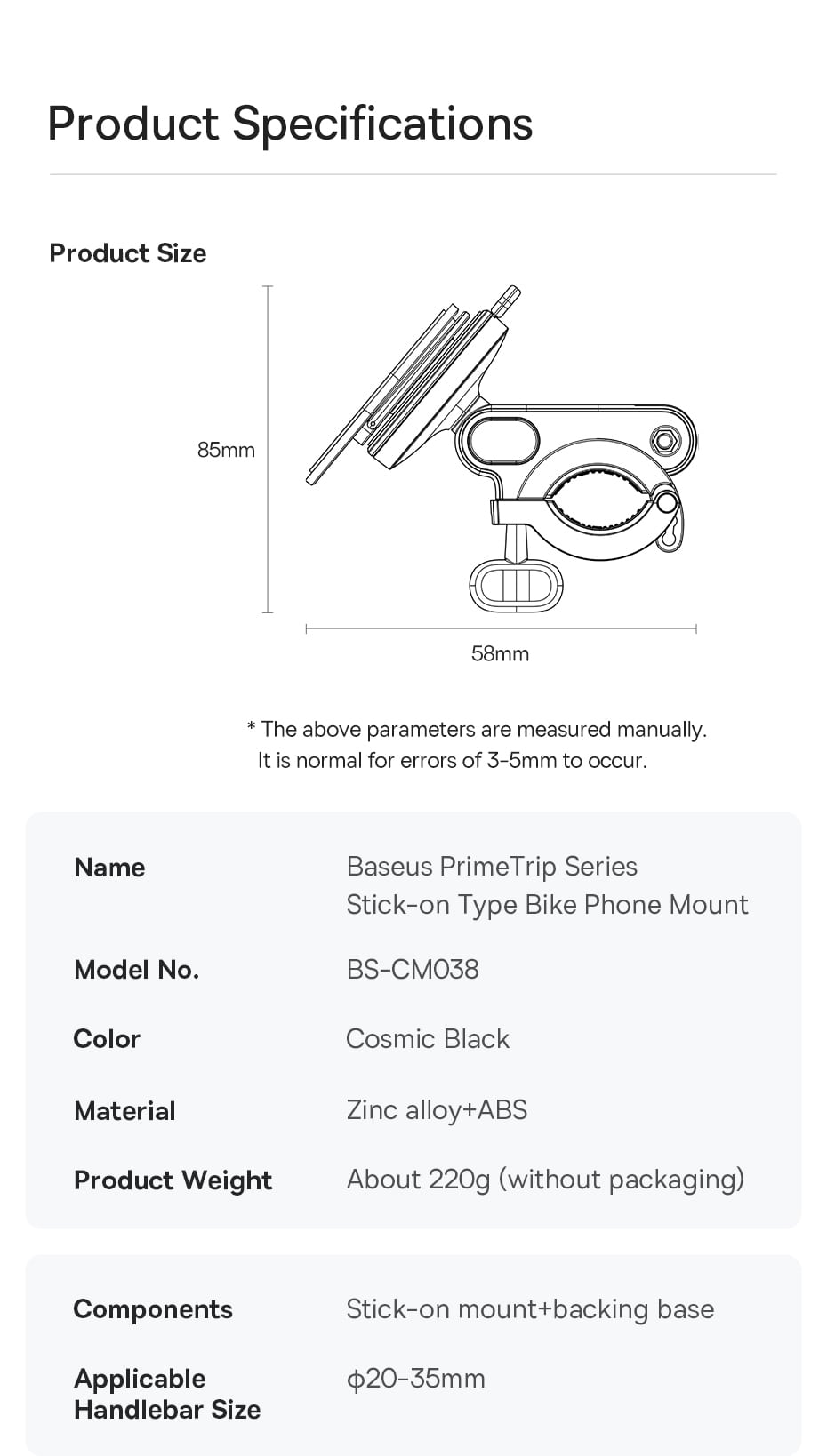 | Tên | Đế Giữ Điện Thoại Xe Đạp Baseus PrimeTrip Series Stick-on Type Bike Phone Mount |