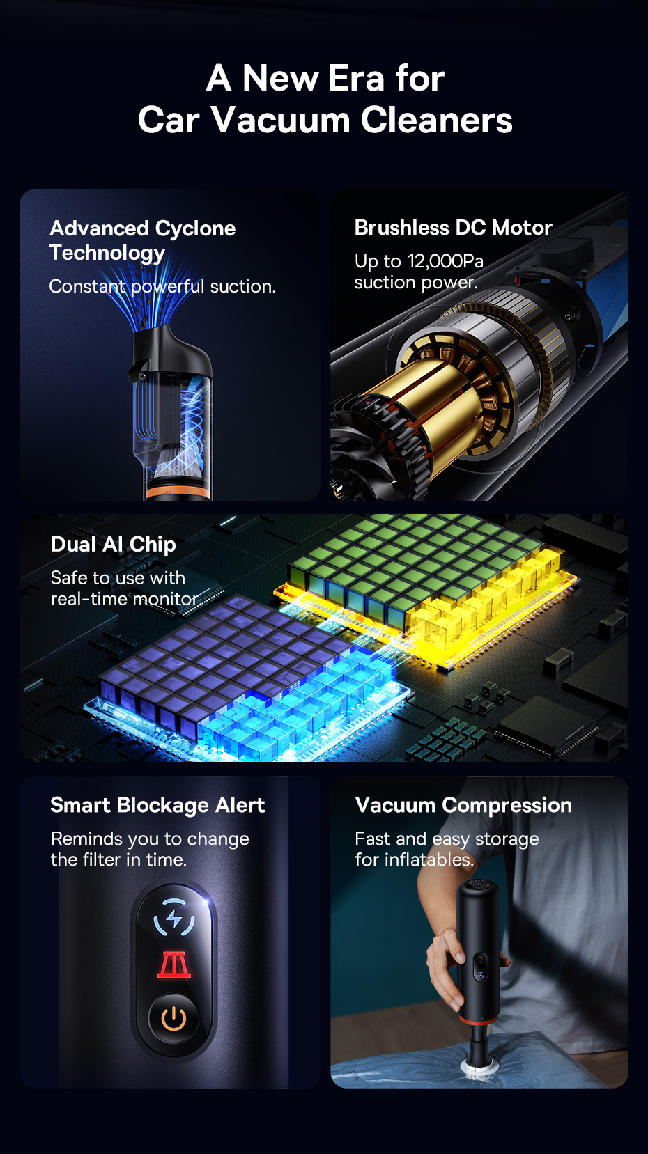 🛡️ Chip AI Thông Minh, Bảo Vệ Động Cơ: Tích hợp chip AI kép, máy có khả năng theo dõi và bảo vệ động cơ khỏi tình trạng quá nhiệt hoặc tắc nghẽn trong thời gian thực, đảm bảo hoạt động an toàn và kéo dài tuổi thọ của sản phẩm.