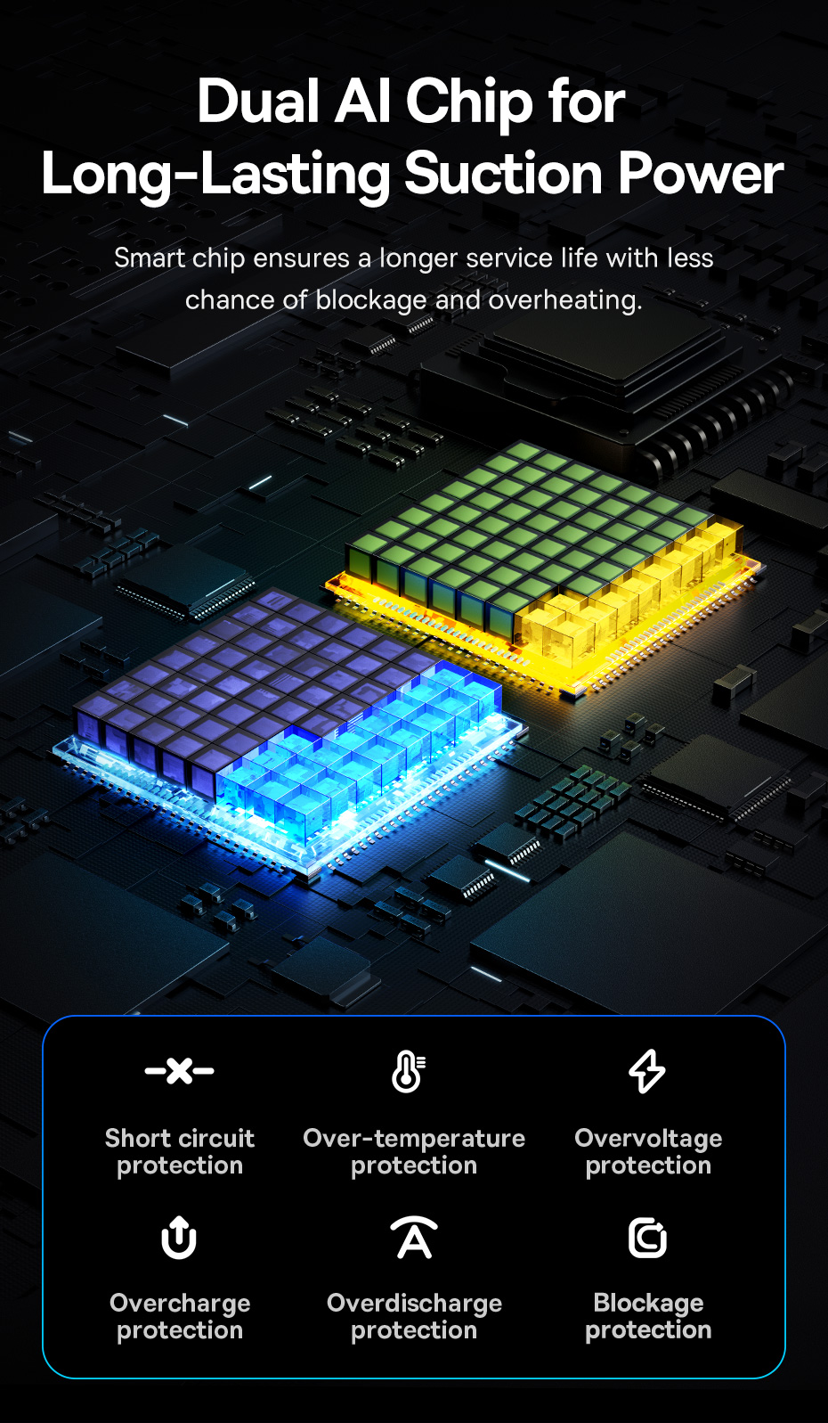 ○ Chip AI kép thông minh bảo vệ động cơ, chống quá nhiệt.