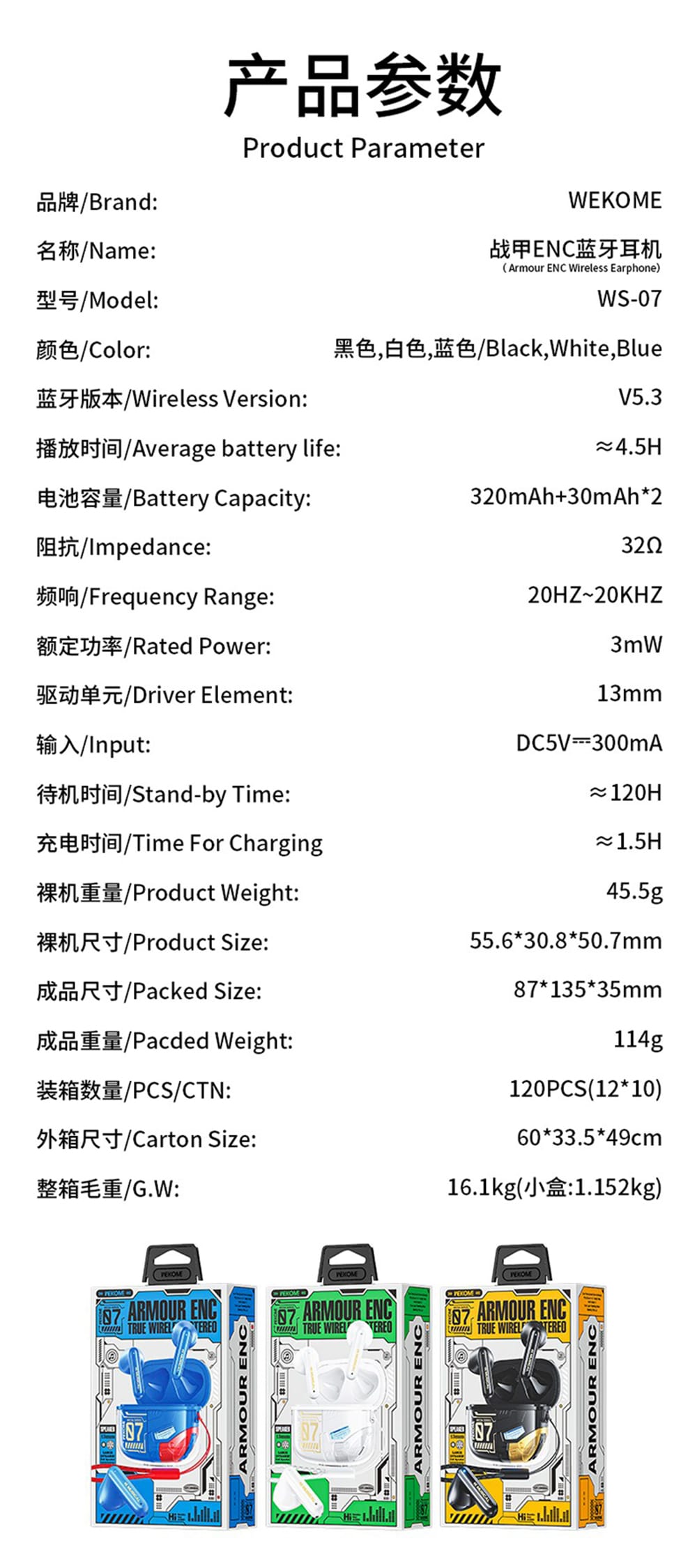 | Tên | Tai Nghe Bluetooth Wekome WS-07 Armour END Wireles Earphone |