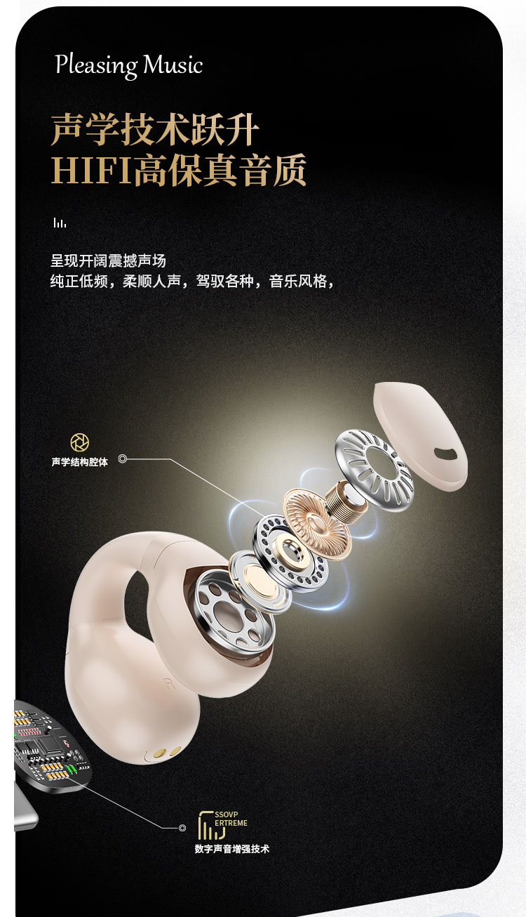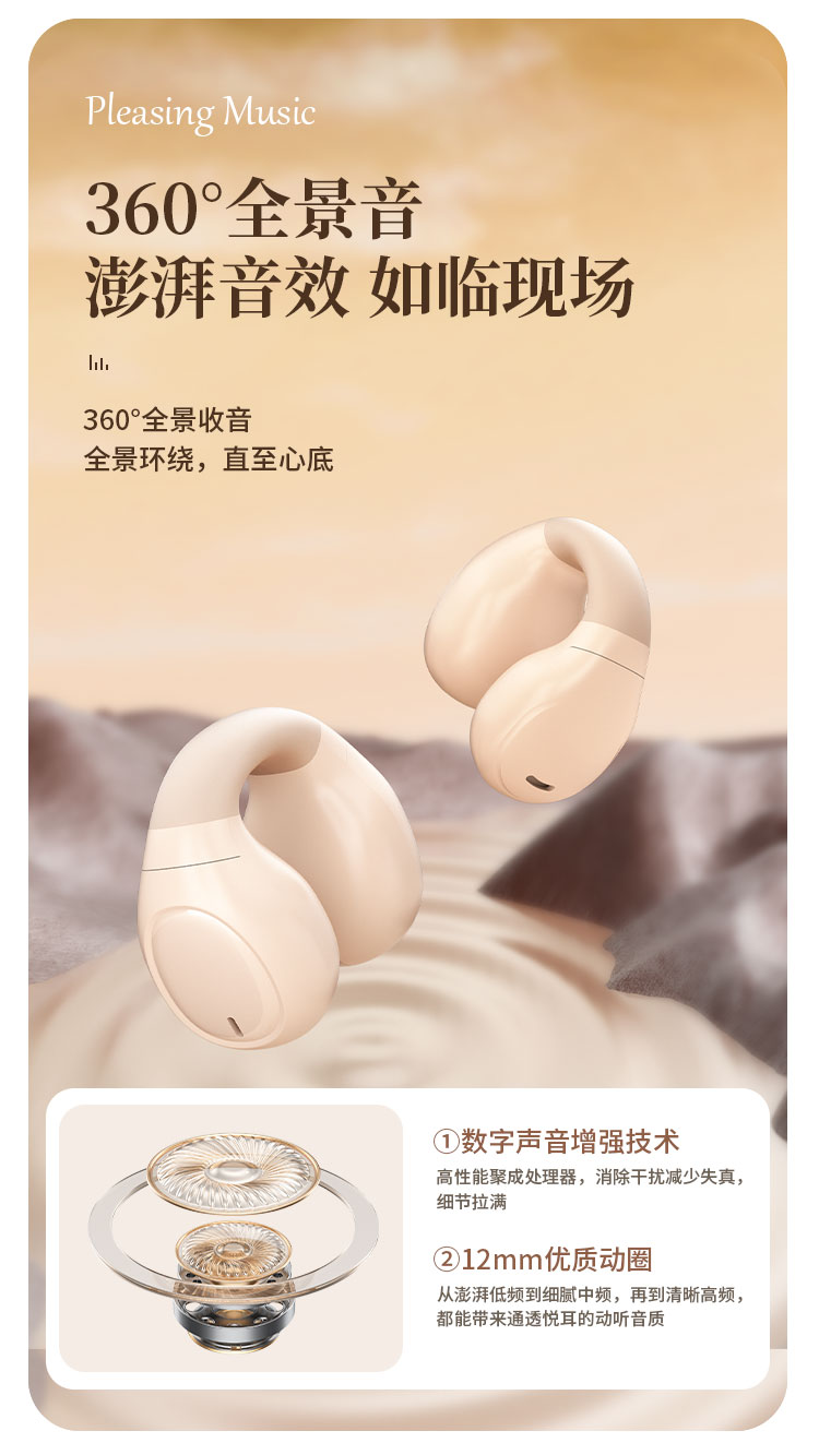 Paiwhale Clip-on Design: Thiết kế với kiểu dáng Paiwhale Clip-on, giúp tai nghe được kẹp chặt vào tai mà không cần dây đeo quanh cổ, mang lại sự thoải mái và tiện lợi khi sử dụng.