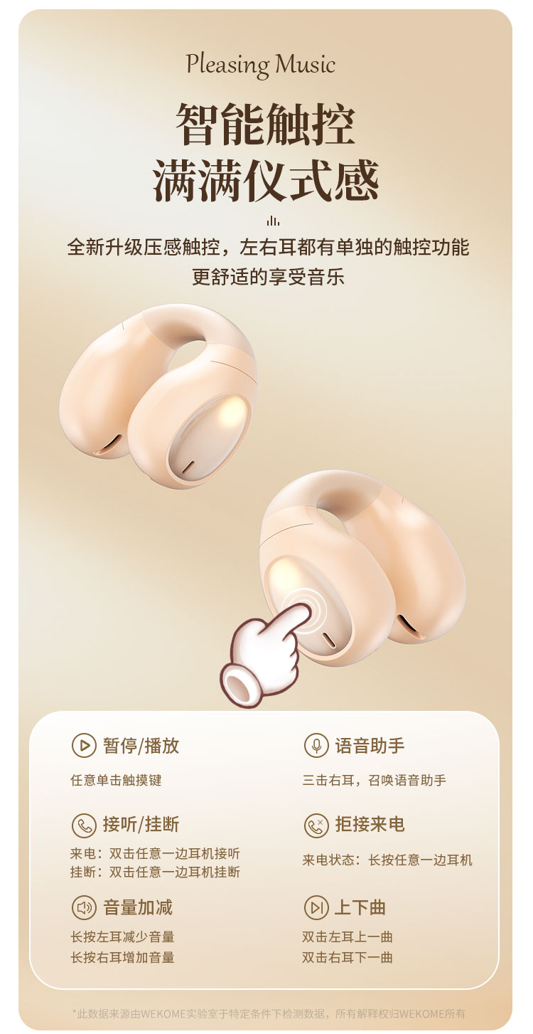 Tai Nghe Bluetooth Wekome WS-08 Paiwhale Clip-on Earphone mang đến sự kết hợp giữa thiết kế thoải mái, tính di động và chất lượng âm thanh, là lựa chọn phù hợp cho người dùng muốn trải nghiệm âm nhạc không dây một cách thuận tiện.