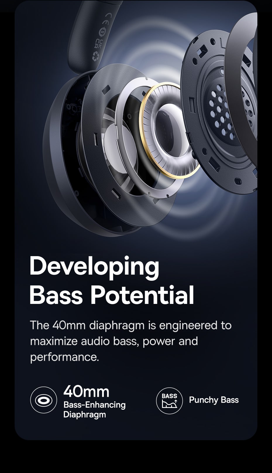 🎶 Âm Bass Mạnh Mẽ, Rung Động: Được trang bị màng loa lớn chuyên dụng cho âm bass, tai nghe mang đến dải âm trầm sâu, mạnh mẽ và uy lực, giúp các bản nhạc EDM, Pop hay Hip-hop trở nên sôi động và chân thực hơn bao giờ hết.