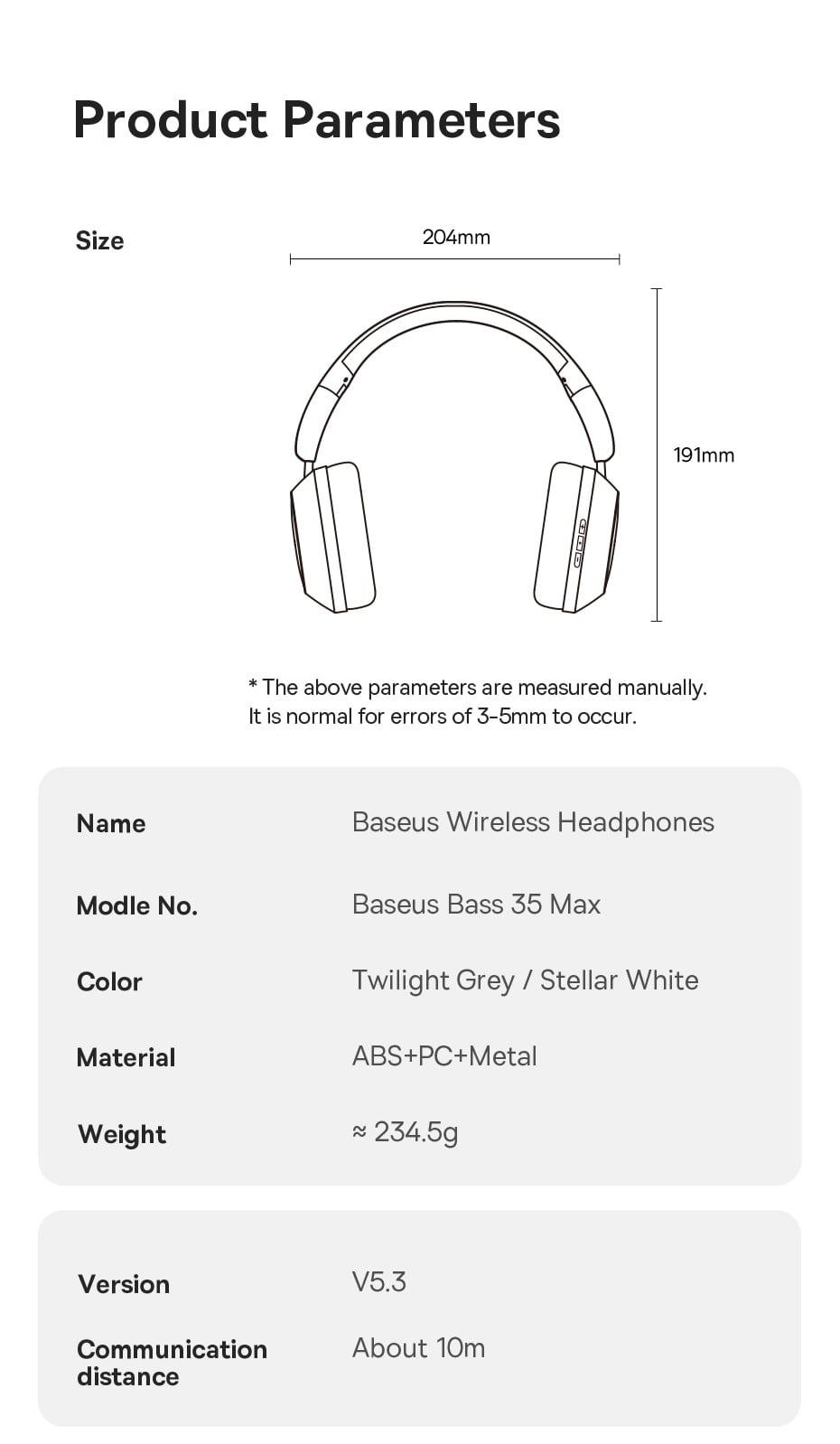 | Tên | Tai Nghe Chụp Tai Baseus Bass 35 Max Wireless Headphones |