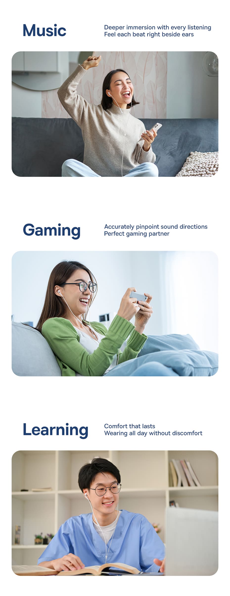 ○ Thiết kế công thái học tạo cảm giác đeo thoải mái, không đau tai.