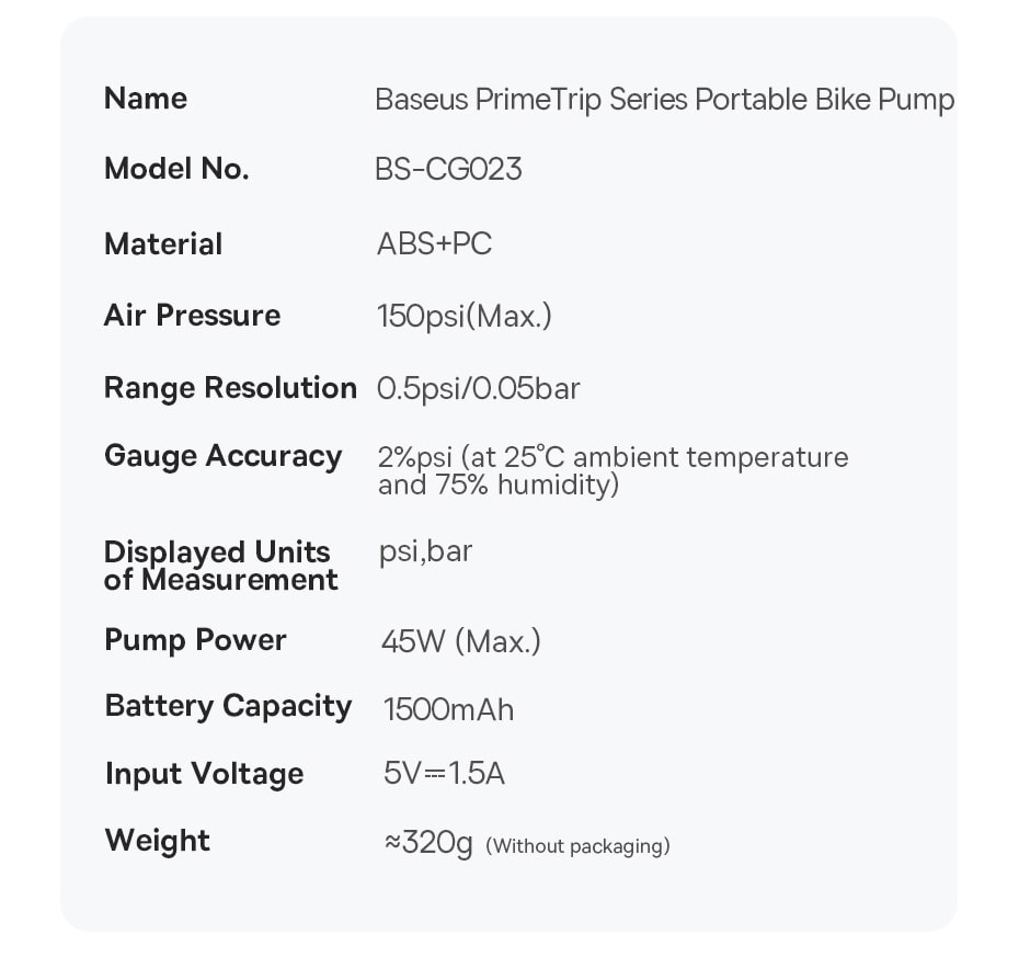 | Tên | Bơm Lốp Xe Máy / Xe Đạp Baseus PrimeTrip Series Portable Bike Pump |