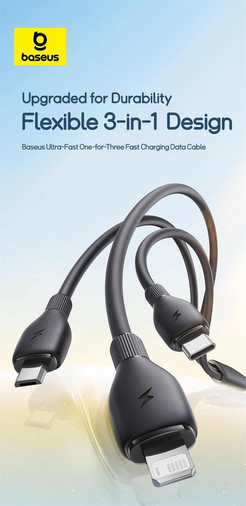 ✨ BASEUS ULTRA-FAST 3-IN-1 - MỘT SỢI CÁP GỌN GÀNG, SẠC NHANH MỌI THIẾT BỊ! ✨