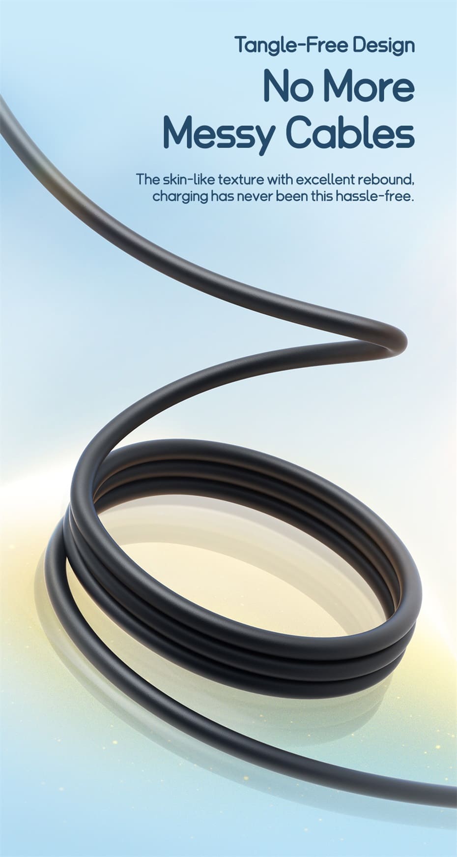 🍮 Chất Liệu TPE Mềm Mại, Chống Rối: Vỏ cáp được làm từ vật liệu TPE cao cấp, cho cảm giác cầm nắm mềm mại và có khả năng đàn hồi tốt, giúp chống rối hiệu quả, dễ dàng quấn lại và cất giữ.