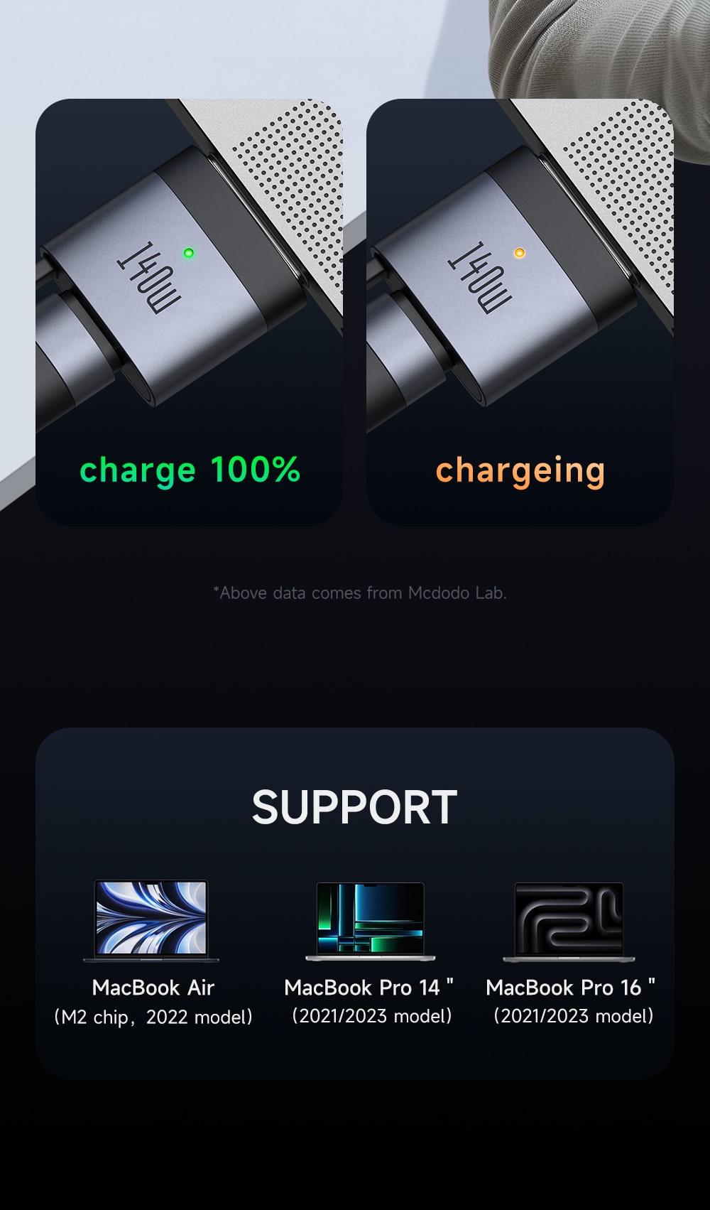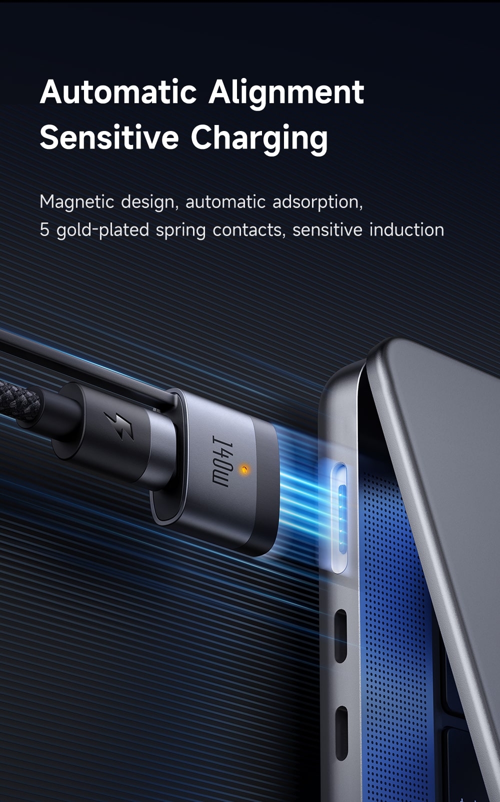 ○ Khi gắn đầu chuyển: Nó lập tức trở thành cáp sạc từ tính 140W chuyên dụng cho các dòng laptop tương thích.