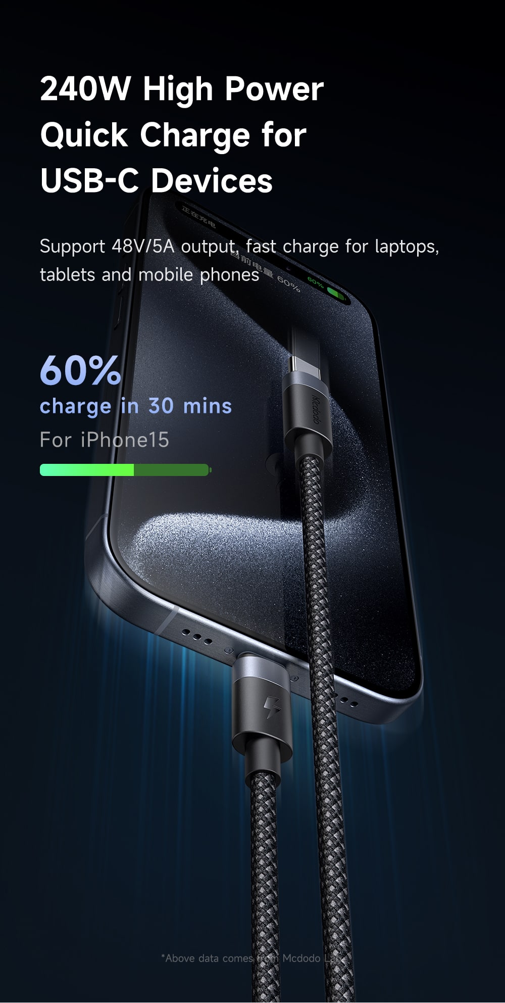 Sạc Type-C 240W: Với chuẩn PD 3.1 mới nhất, cáp có thể cung cấp năng lượng cho cả những chiếc laptop gaming hay máy trạm đòi hỏi công suất cao nhất.
