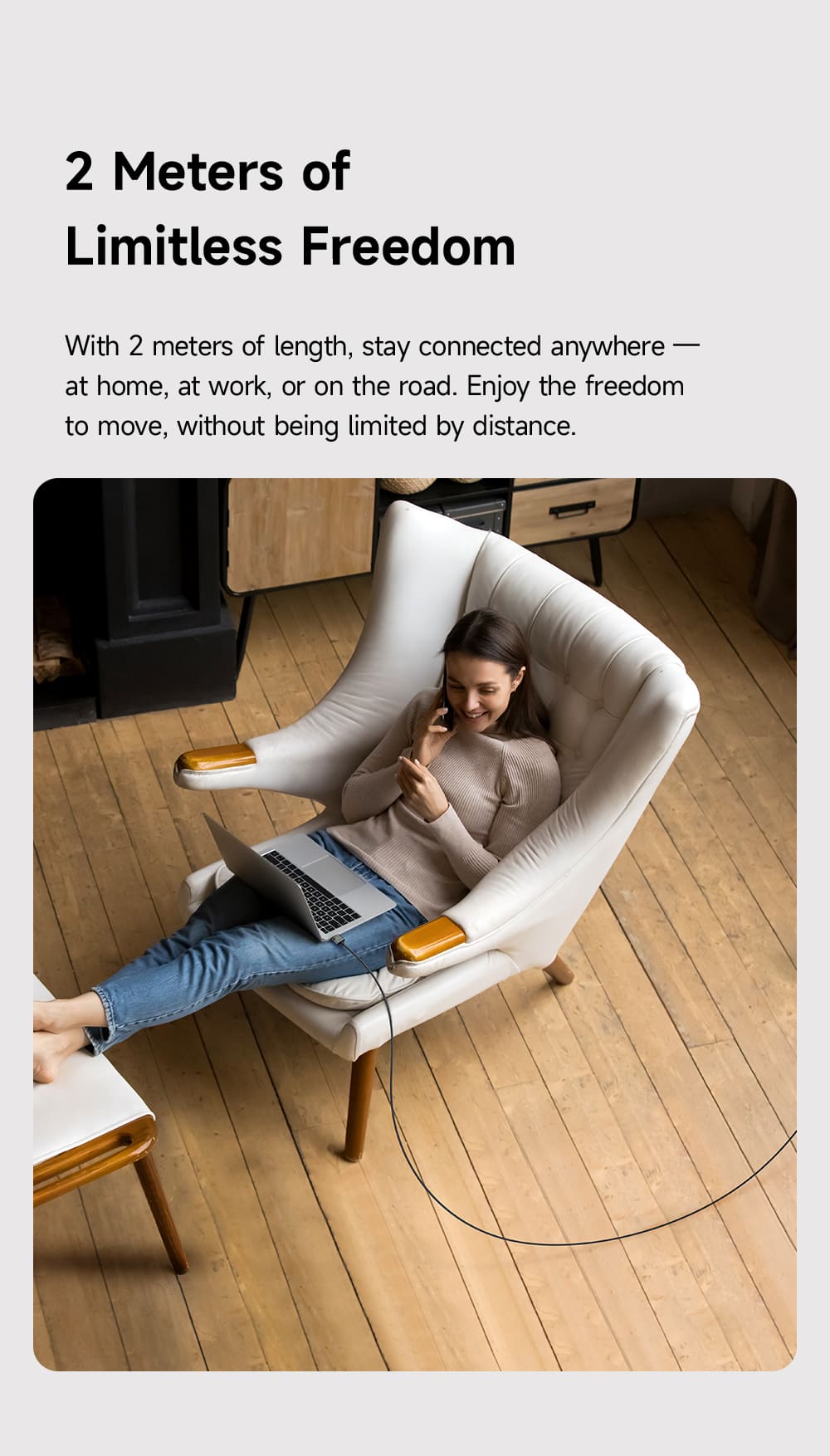 💪 Thiết Kế Bền Bỉ & Cao Cấp: Dây cáp được bọc dù bện nylon mật độ cao chống rối và chống đứt. Đầu cắm làm từ hợp kim nhôm với thiết kế trong suốt tinh tế, vừa bền bỉ vừa mang lại vẻ ngoài sang trọng.