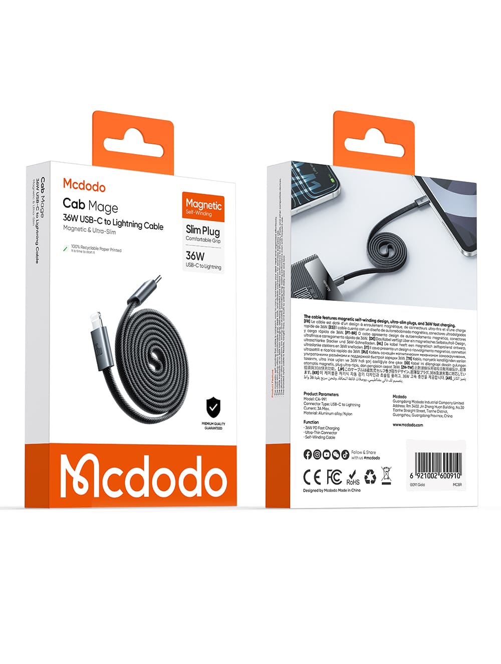| Tên | Cáp Sạc Mcdodo Cab Mage Type-C to Ln 36W | Tự Cuốn Gọn Nhẹ, Cáp Dẹt Từ Tính |