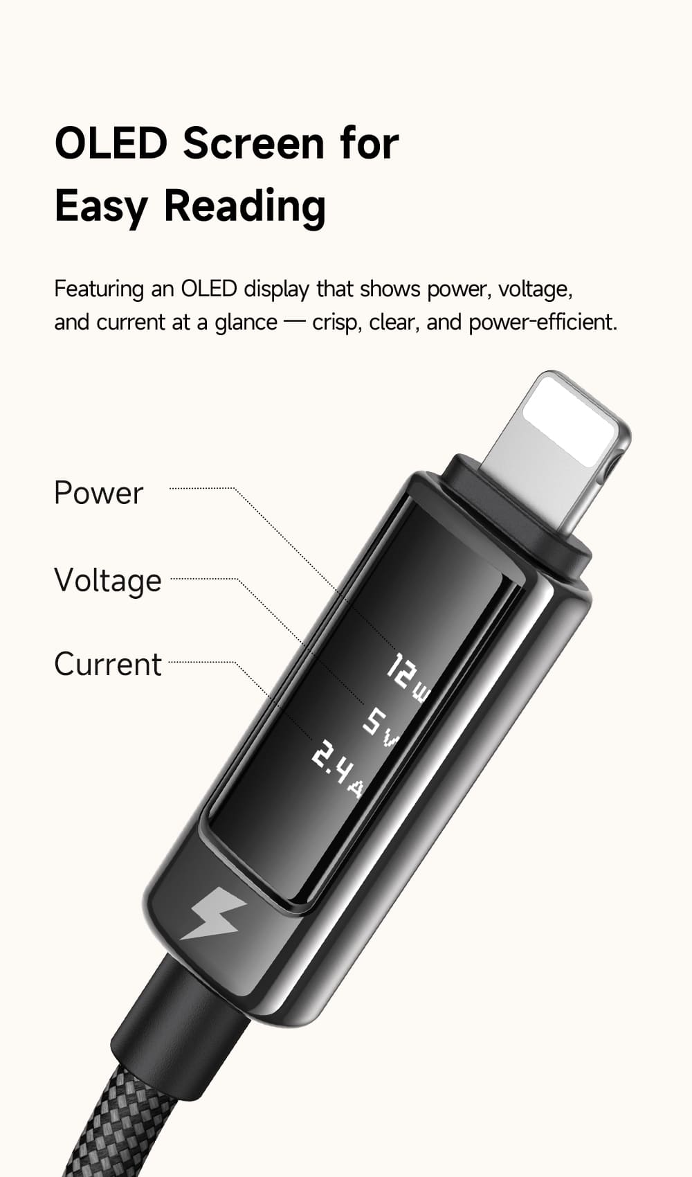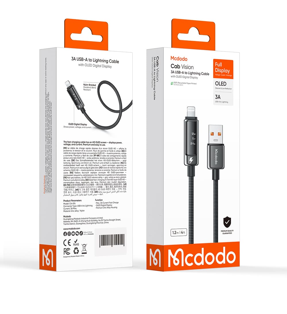 Nâng tầm trải nghiệm sạc của bạn với cáp Mcdodo Vision cổng Ln. Điểm nhấn đột phá nằm ở màn hình OLED sắc nét, giúp bạn theo dõi chính xác từng thông số sạc theo thời gian thực, kết hợp cùng dòng điện 3A an toàn và thiết kế siêu bền bỉ.