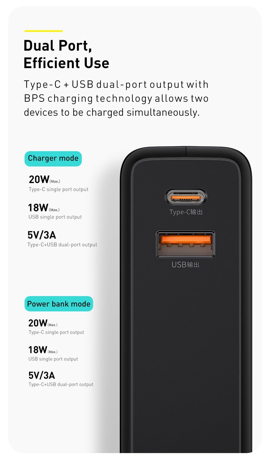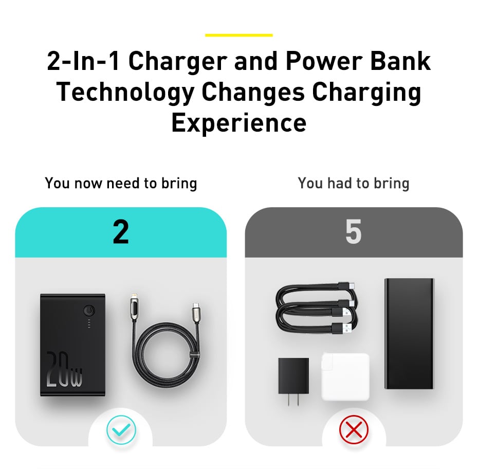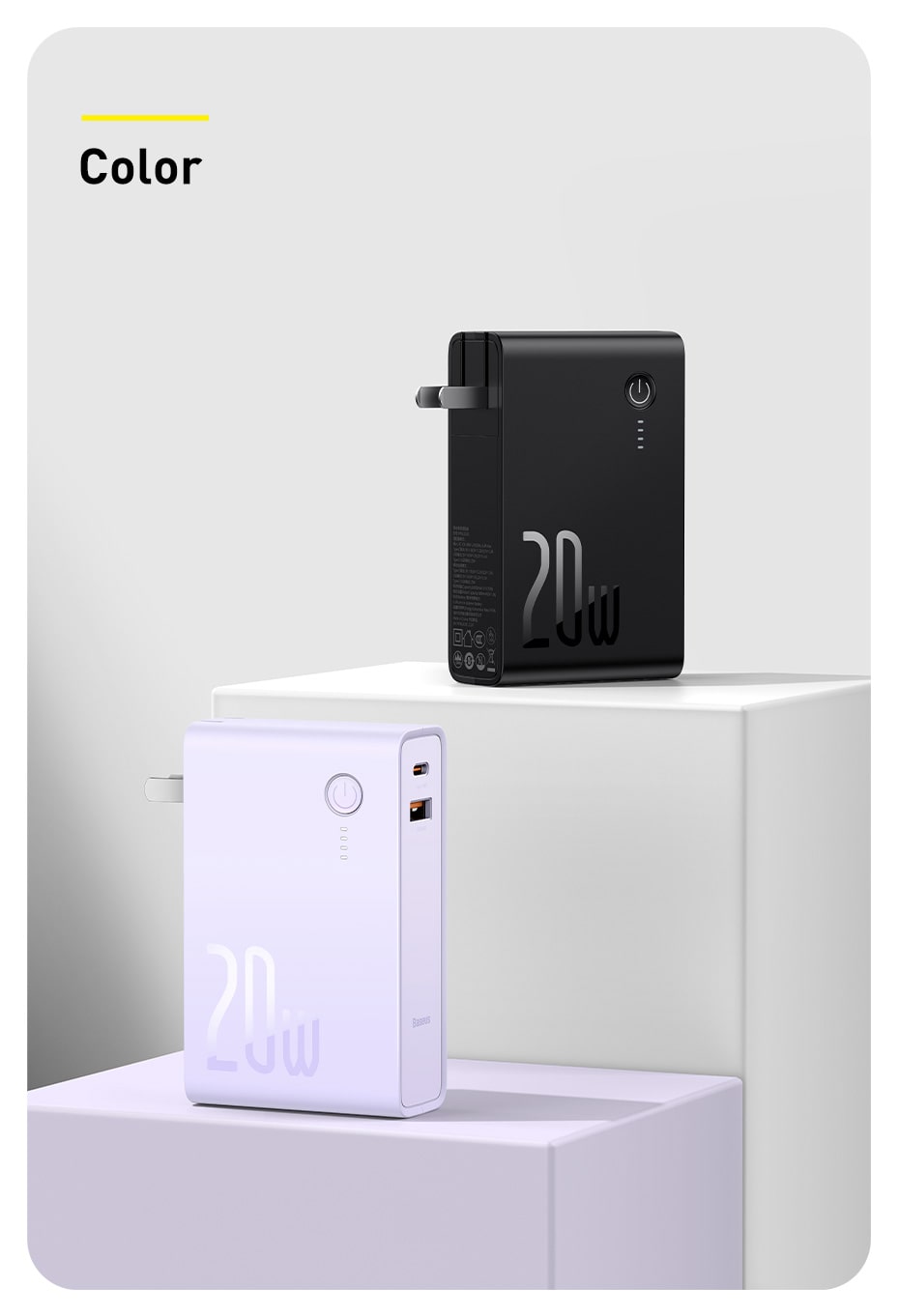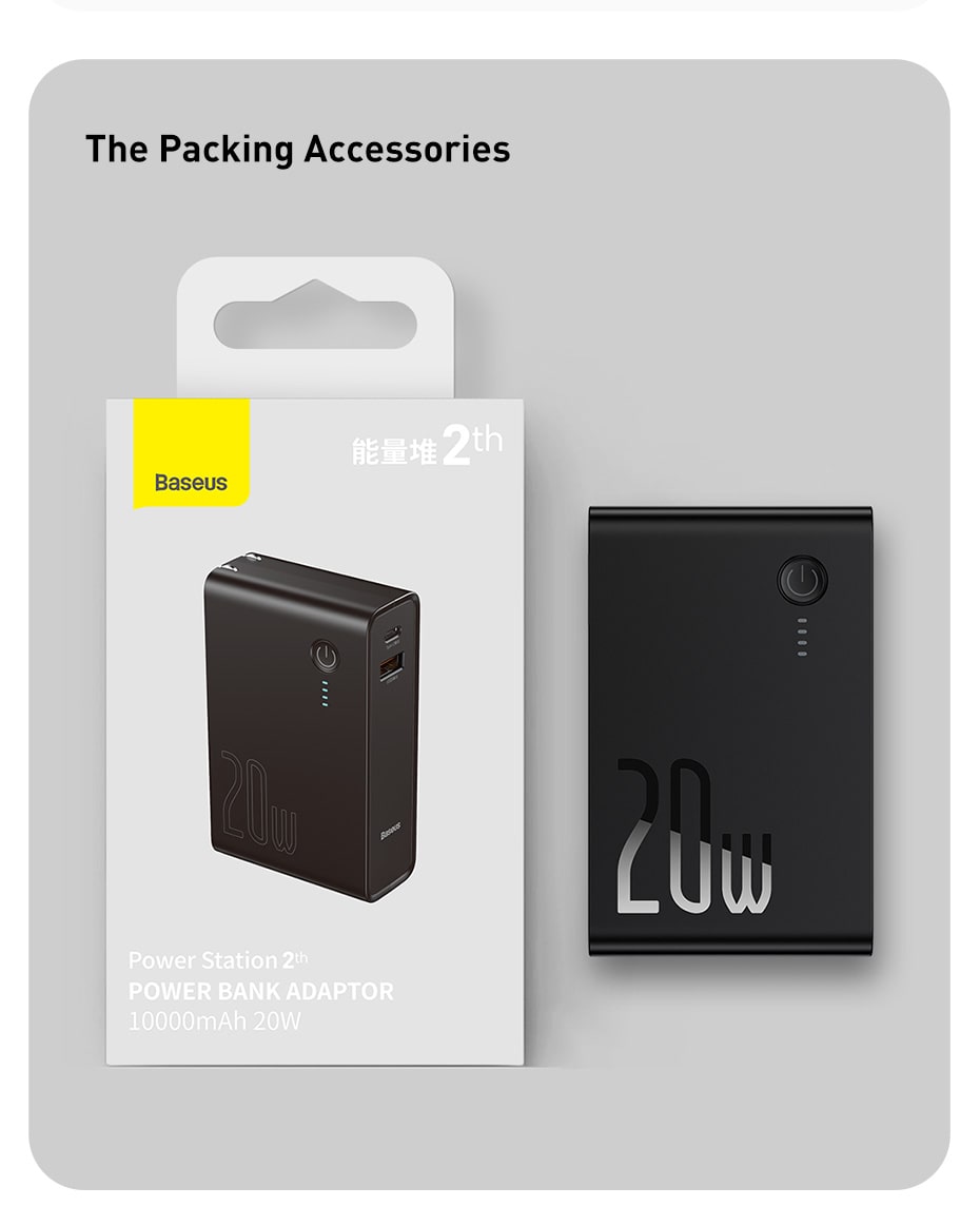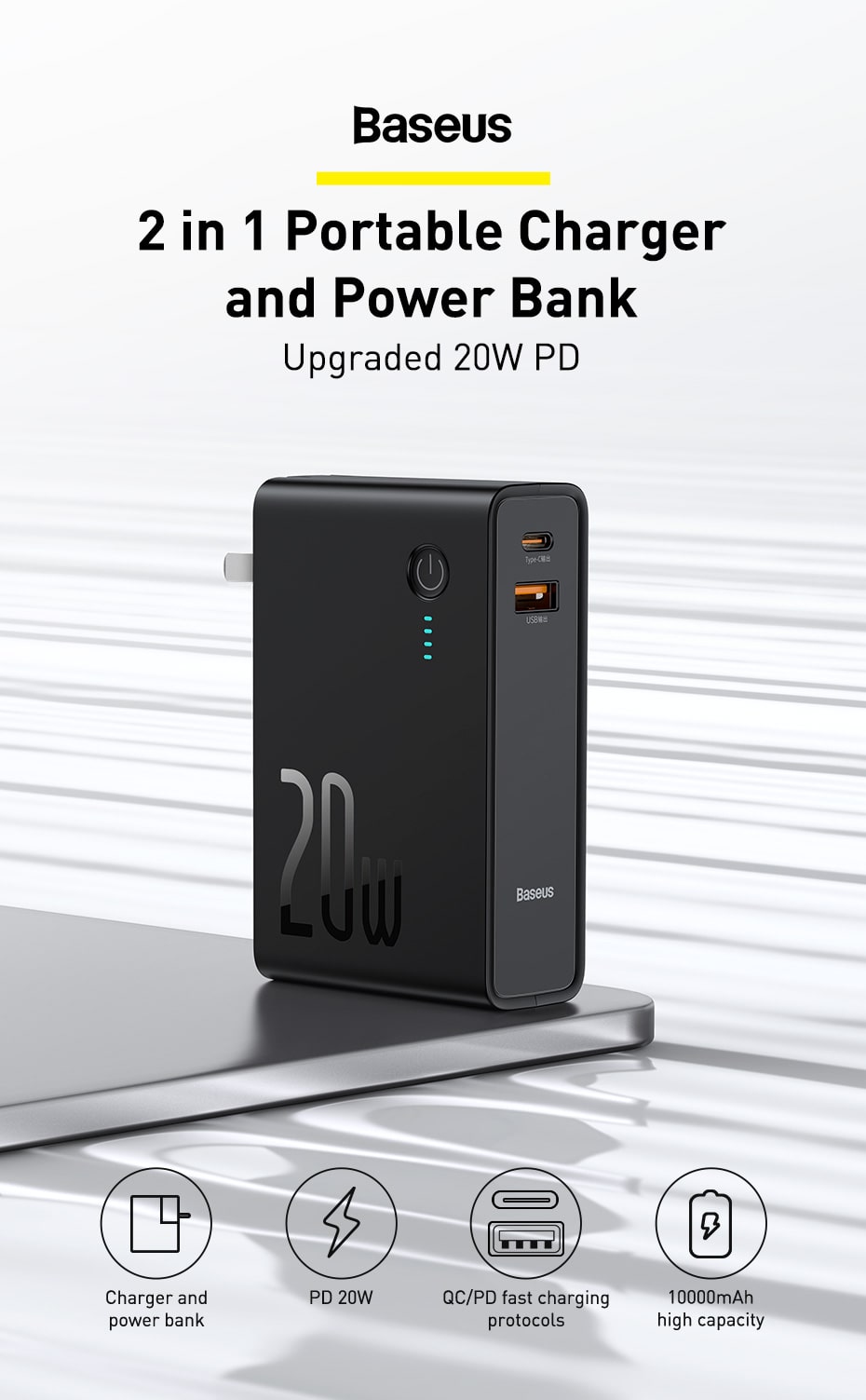 Cốc sạc nhanh kiêm pin sạc dự phòng Baseus Power Station 2 Power Bank Adaptor 10000mAh 20W PD/QC3.0 (10000mAh , Type C/USB Quick Charge,Travel Charger & Powerbank )