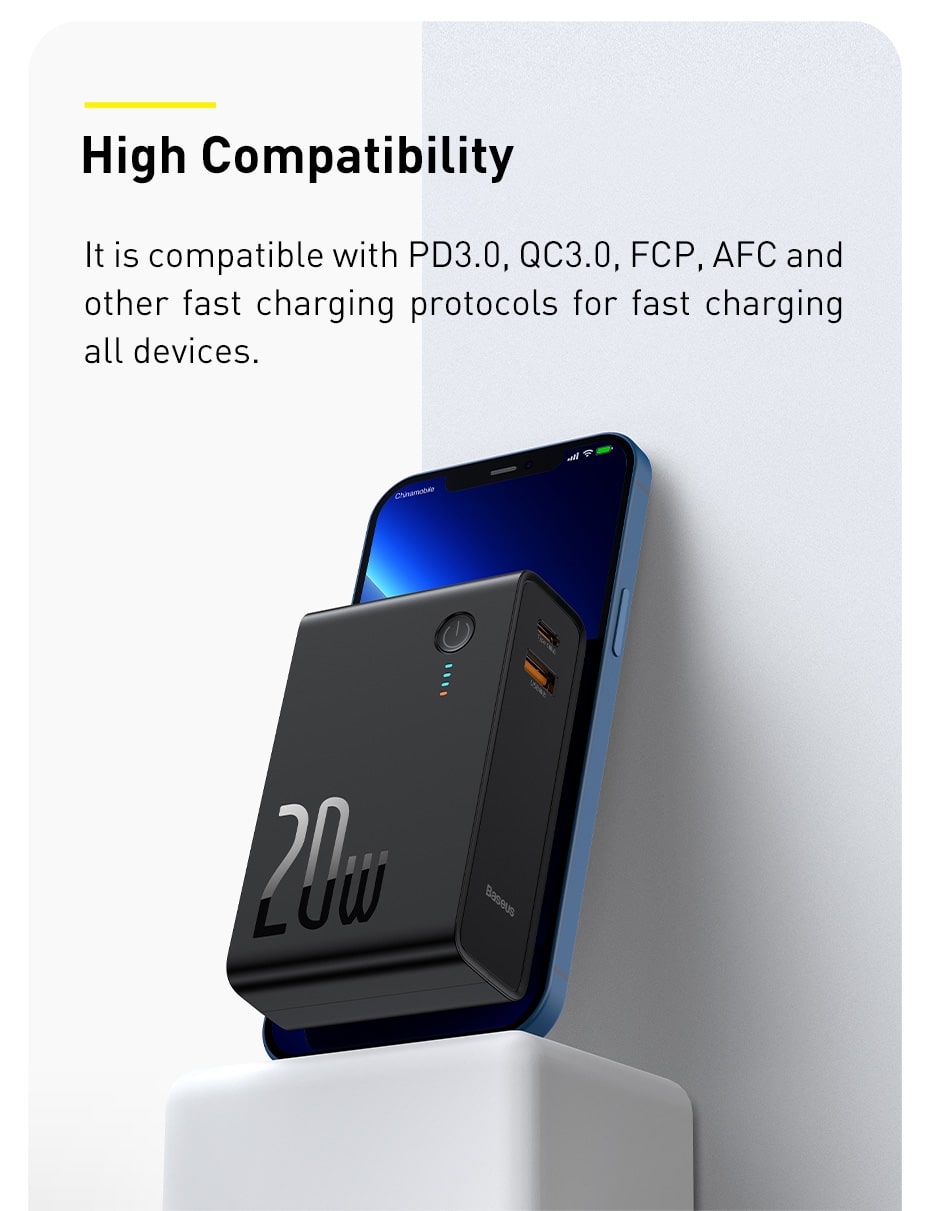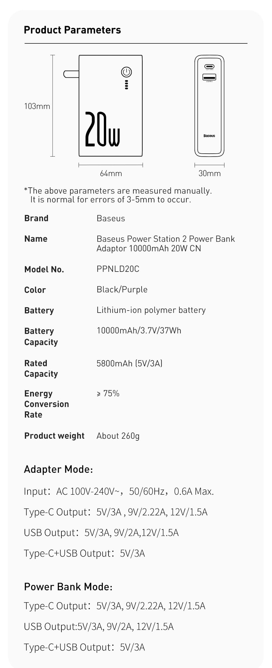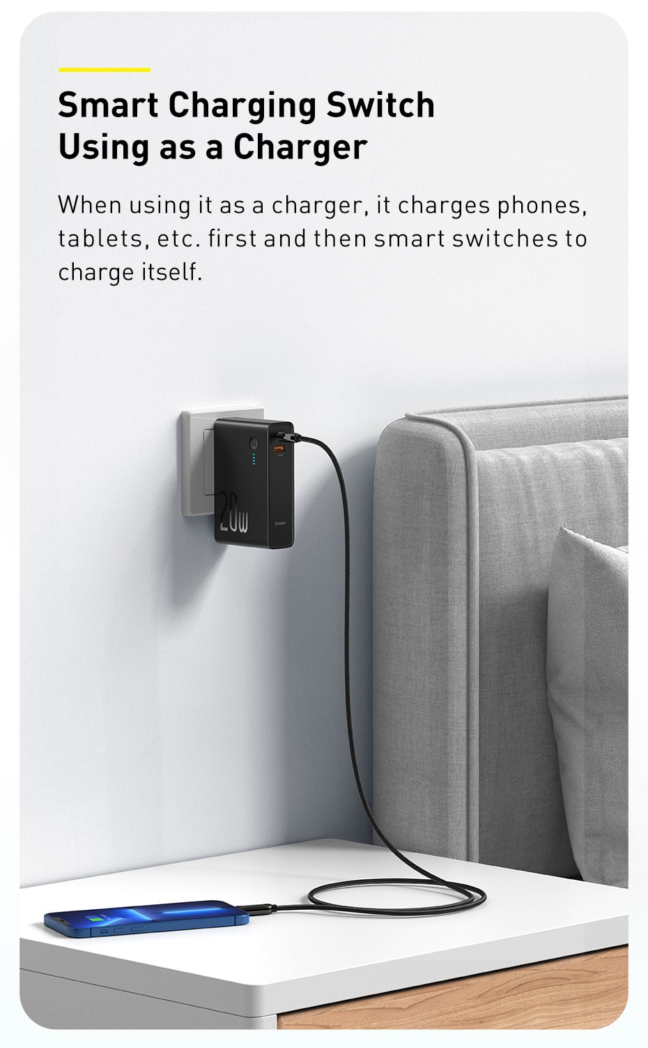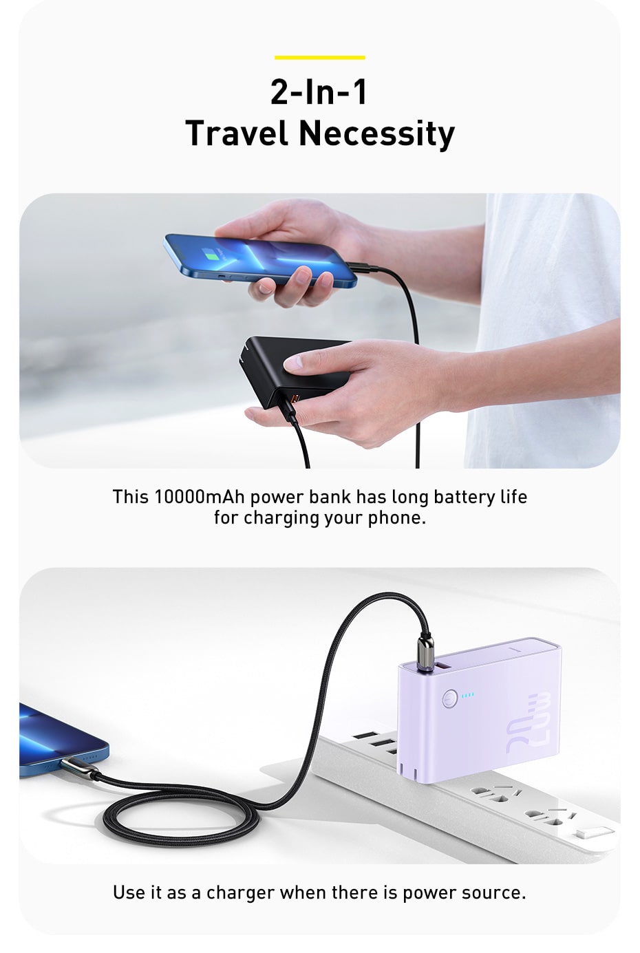 Cốc sạc nhanh kiêm pin sạc dự phòng Baseus Power Station 2 Power Bank Adaptor 10000mAh 20W PD/QC3.0 (10000mAh , Type C/USB Quick Charge,Travel Charger & Powerbank )