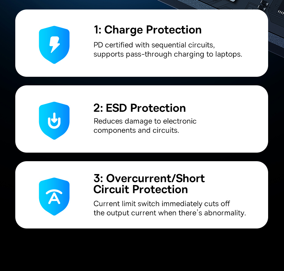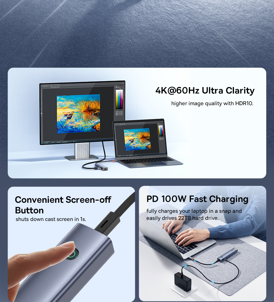 ⚡ SẠC NHANH PD (Ở các phiên bản có cổng PD): Hỗ trợ sạc xuyên qua (pass-through charging) với công suất cao qua cổng Type-C PD, đảm bảo năng lượng cho laptop và điện thoại của bạn.