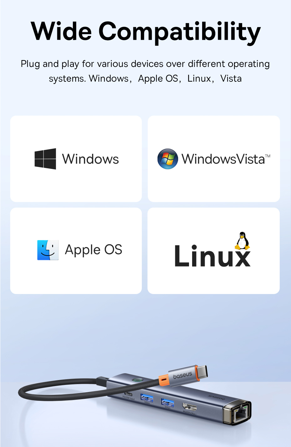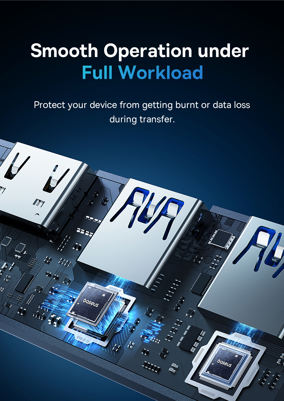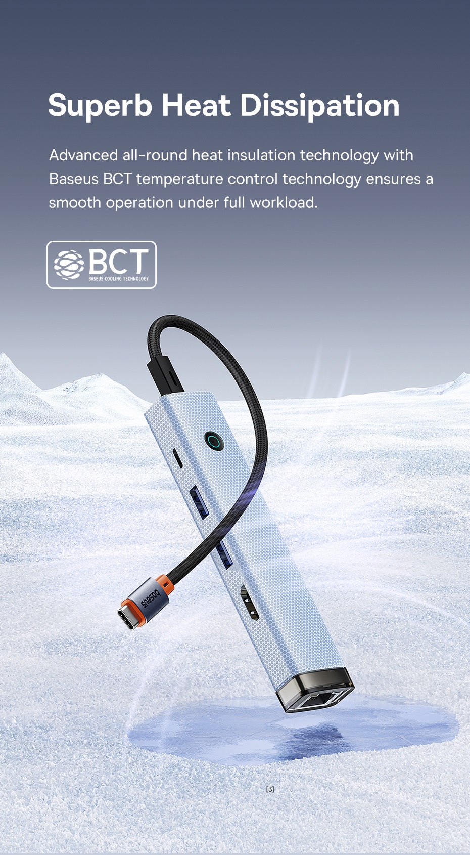 ❄️ TẢN NHIỆT BCT MÁT MẺ: Công nghệ Baseus Cooling Technology (BCT) giúp hub luôn hoạt động mát mẻ, ổn định ngay cả khi sử dụng nhiều cổng cùng lúc.