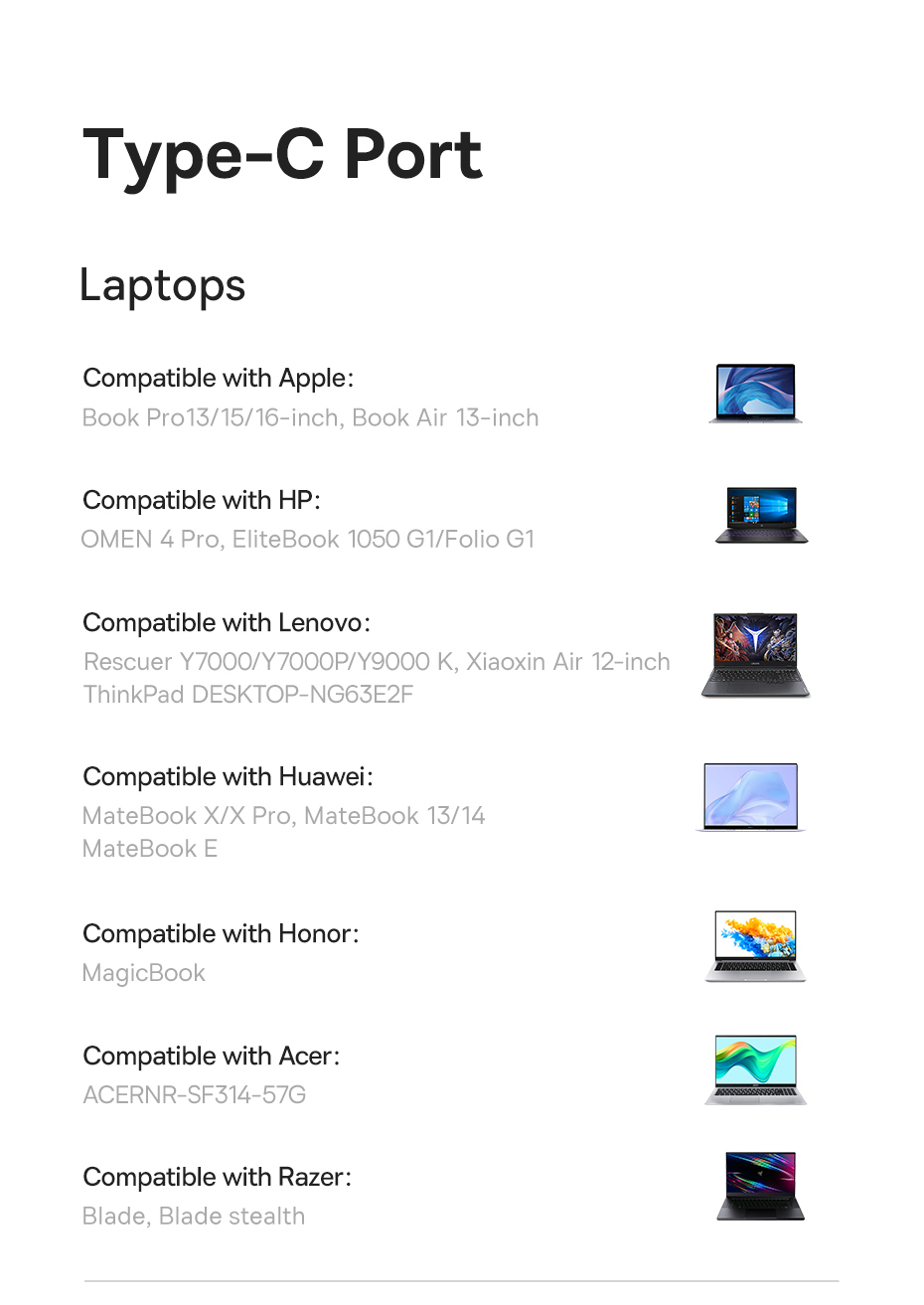 | Tương thích thiết bị | Các thiết bị có cổng Type-C |