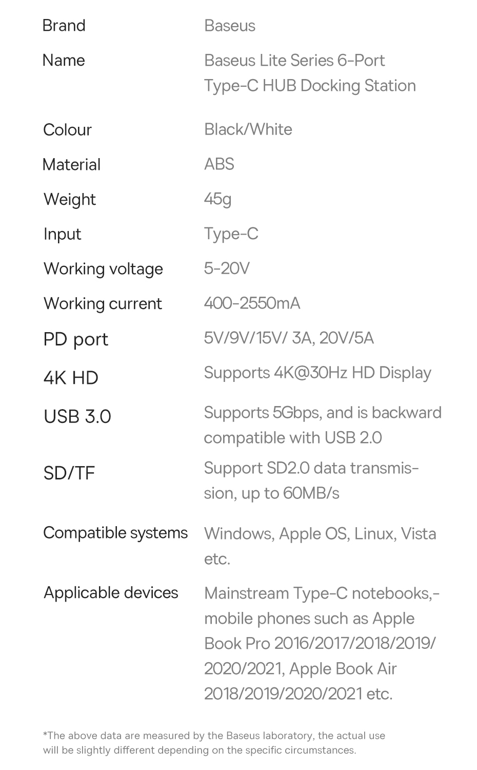 | Tên | Hub Mở Rộng Kết Nối OS-Baseus Lite Series 6-Port Type-C HUB Docking Station |