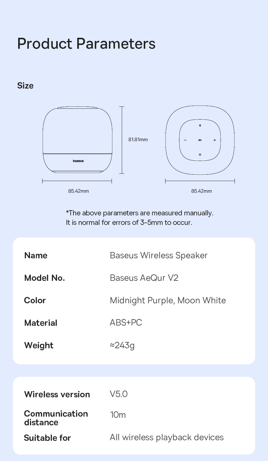 | Tên | Loa Bluetooth Baseus AeQur V2 Wireless Speaker Midnight |