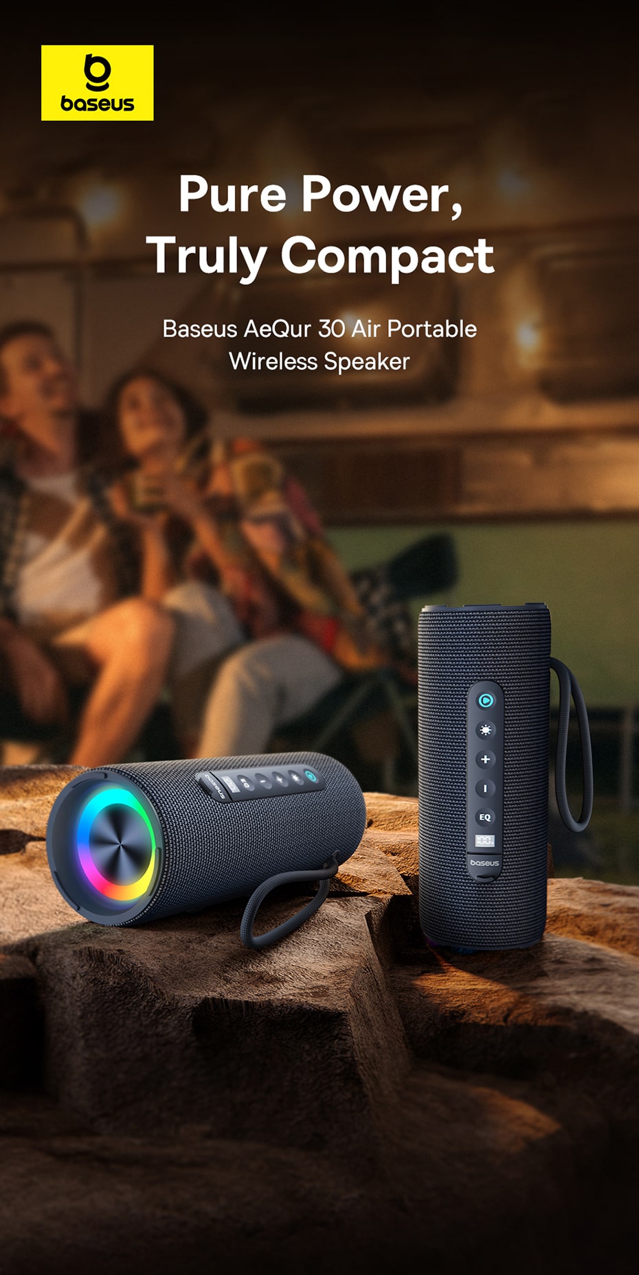 Khuấy động mọi không gian với chiếc loa di động Baseus AeQur 30 Air! Được thiết kế để mang lại âm thanh mạnh mẽ, sống động trong một thân hình nhỏ gọn, cùng hiệu ứng đèn RGB đầy phong cách, đây là người bạn đồng hành hoàn hảo cho mọi bữa tiệc, chuyến dã ngoại hay đơn giản là những giây phút thư giãn tại nhà.