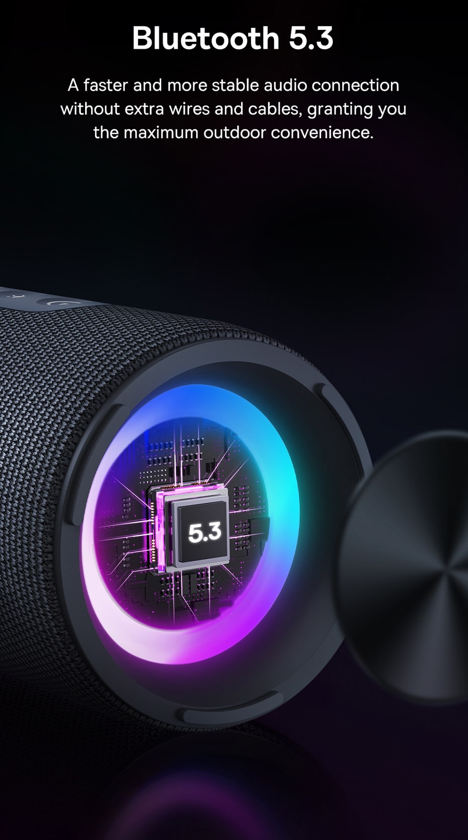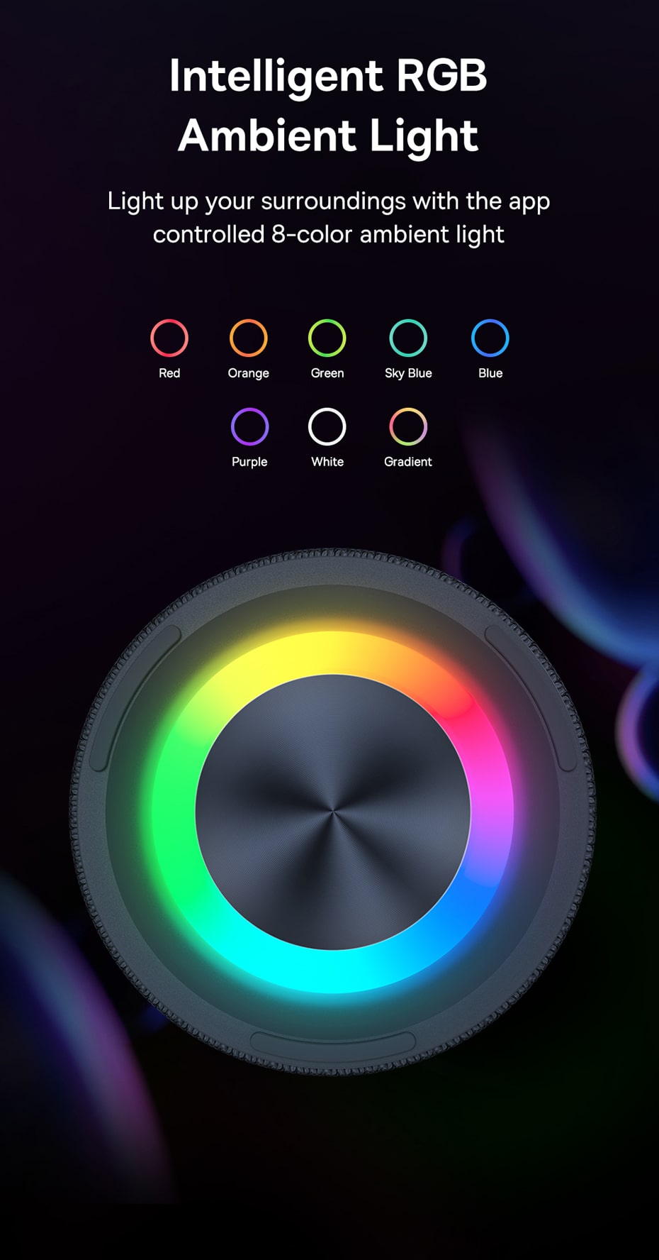🌈 Hiệu Ứng Đèn LED RGB Sống Động: Tích hợp vòng đèn LED RGB với nhiều màu sắc và hiệu ứng ánh sáng khác nhau, đồng bộ với nhịp điệu âm nhạc, tạo nên một không khí tiệc tùng đầy hứng khởi và trực quan.