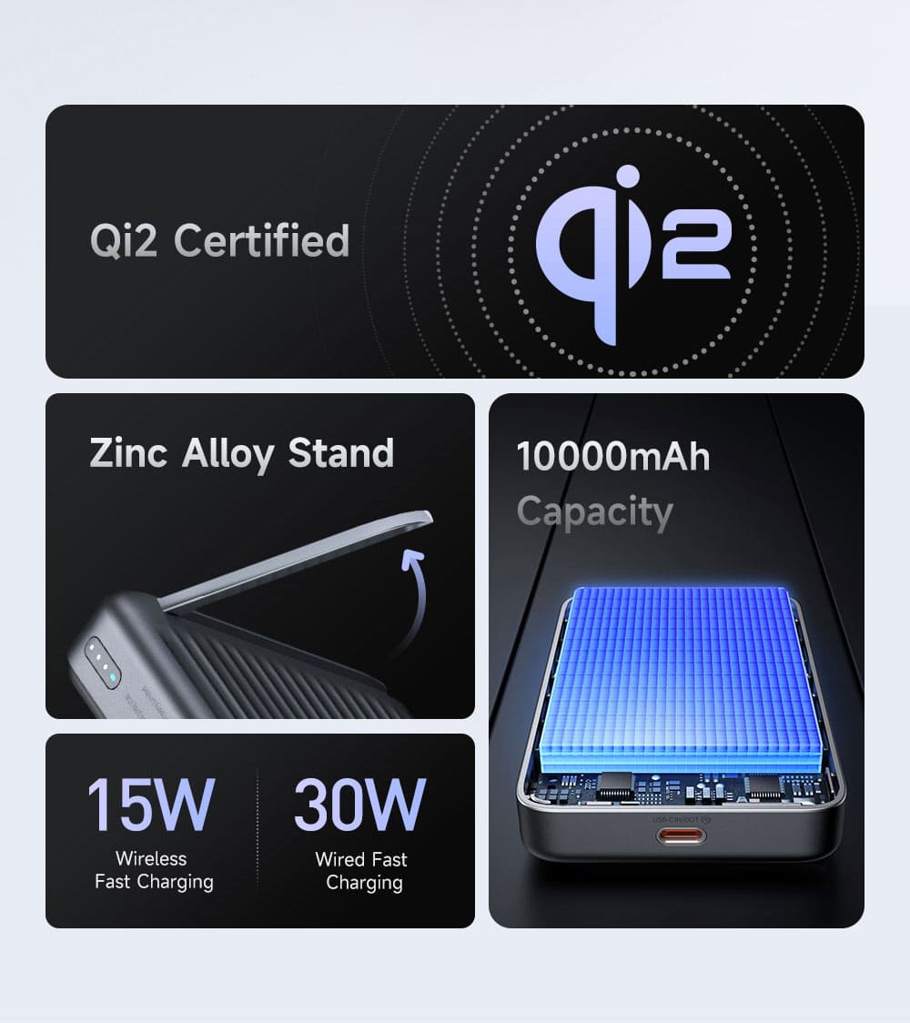 Tạm biệt tình trạng sạc không dây chậm và hít yếu! Pin Sạc Dự Phòng Mcdodo MagQ 10000mAh là một trong những sản phẩm đầu tiên được trang bị chuẩn Qi2 mới nhất, mang đến giải pháp sạc từ tính hoàn hảo, kết hợp giữa tốc độ, sự tiện lợi của đế đỡ và thiết kế đẳng cấp.