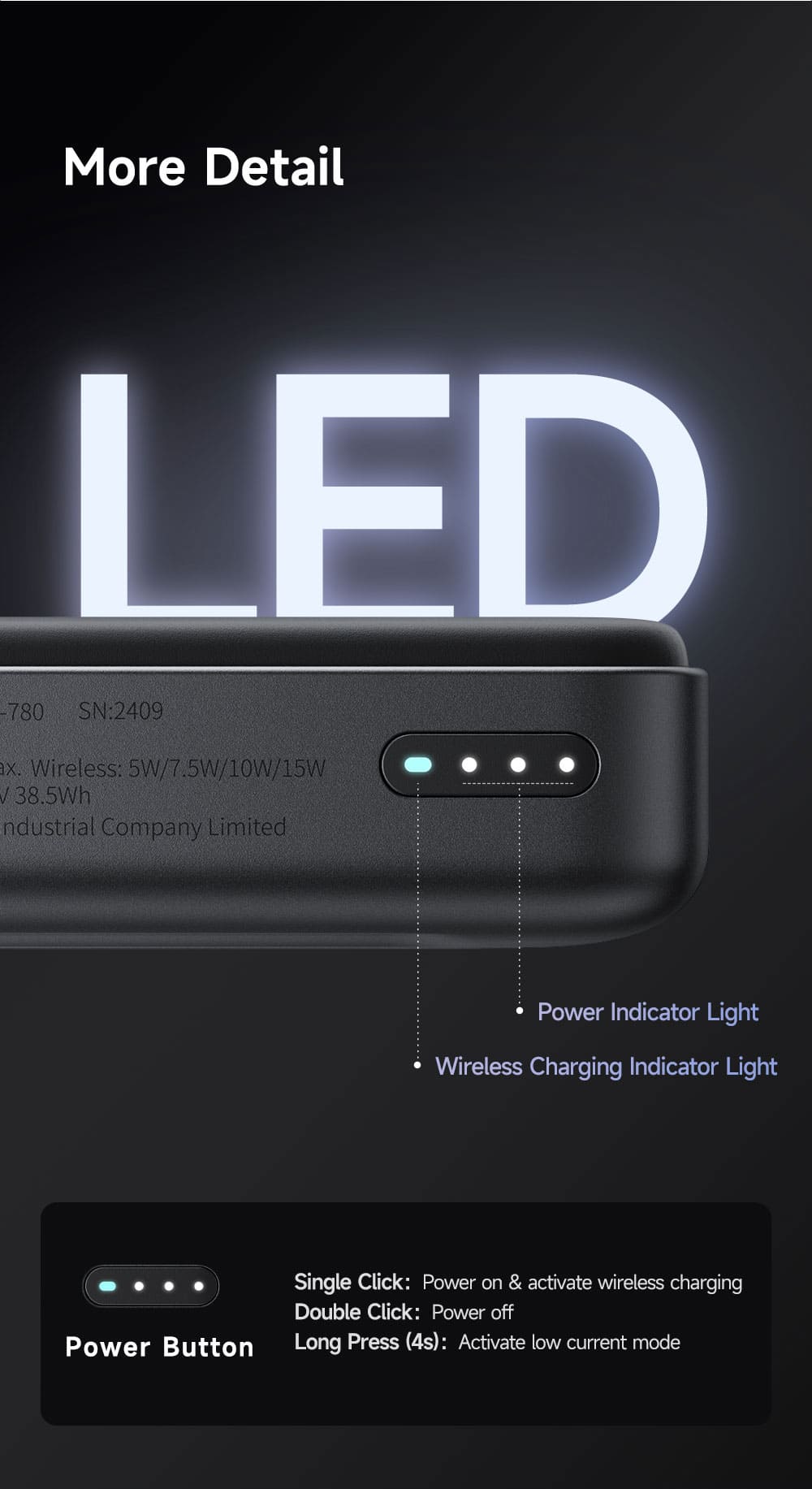 | Wireless Output | 5W / 7.5W / 10W / 15W |